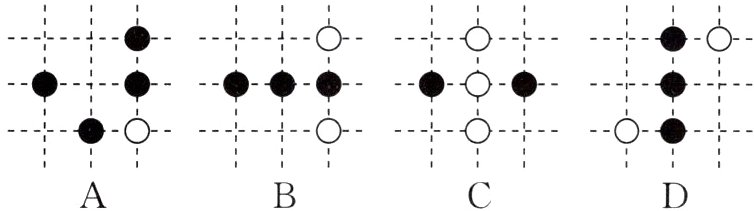 2. [2024·洛阳期末]围棋起源于中国,古代称之为“弈”.下列由黑白棋子摆成的图案是中心对称图形但不是轴对称图形的是 ( )
