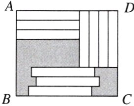 10.(中考趋势题)[2024·临汾期末]如图,在长方形$ABCD$中放置10个形状、大小都相同的小长方形,$AD$与$CD$的差为2,小长方形的周长为28,则图中阴影部分的面积为 ( )