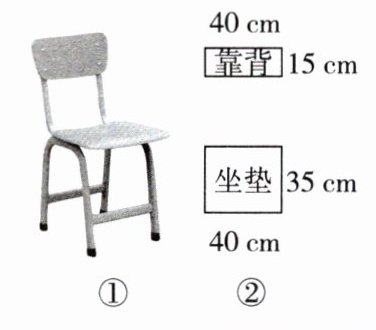 图①是一张学生椅,主要由靠背、坐垫及铁架组成.经测量,该款学生椅的靠背尺寸为40 cm×15 cm,坐垫尺寸为40 cm×35 cm.图②是靠背与坐垫的尺寸示意图.