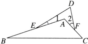 6. [2024·洛阳期末]如图,$E$,$F$是$\triangle ABC$的边$AB$,$AC$上的点,$D$是点$A$上方一点,若$\angle B+\angle C=64^{\circ}$,$\angle D = 70^{\circ}$,则$\angle1+\angle2=$_______.