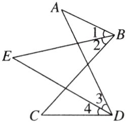 理由:易得∠1+∠A=∠3+∠E,①