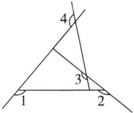 2. 如图,求$\angle1+\angle2+\angle3+\angle4$的度数.