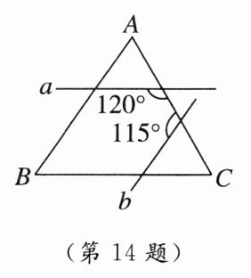 14. 如图为两直线a,b与△ABC相交的情形,其中a,b分别与BC,AB平行. 根据图中标示的角度,回答下列问题:
