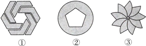 题图①至少旋转60°;题图②至少旋转72°;题图③至少旋转40°.