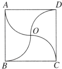 8.[2024·郑州月考]如图,正方形ABCD的边长为2 cm,以各边中点为圆心,1 cm为半径依次作$\frac{1}{4}$圆,将正方形分成四部分.
