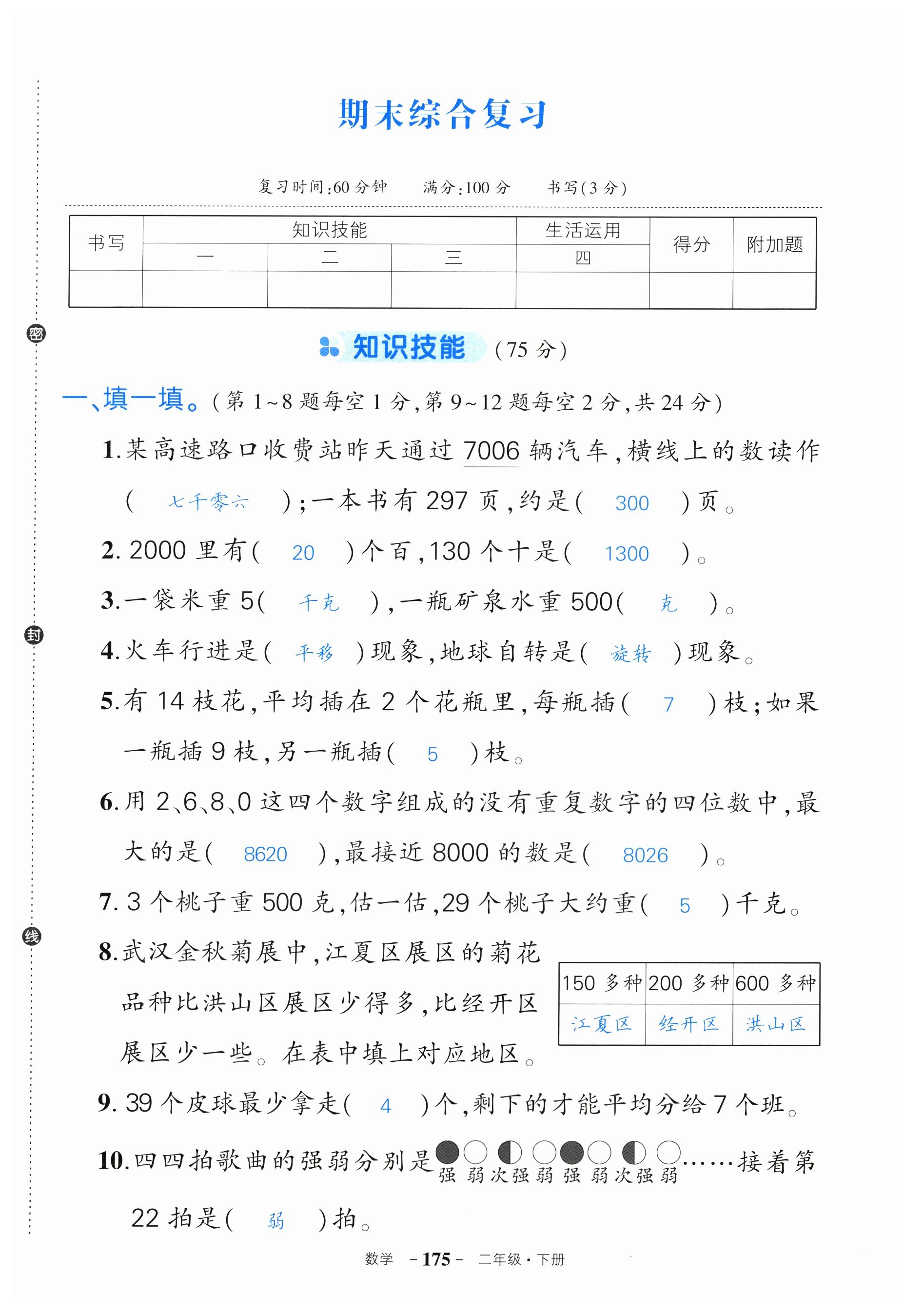 注:目前有些书本章节名称可能整理的还不是很完善,但都是按照顺序排列的,请同学们按照顺序仔细查找。练习册 2025年黄冈状元成才路状元作业本二年级数学下册人教版福建专版 答案主要是用来给同学们做完题方便对答案用的,请勿直接抄袭。