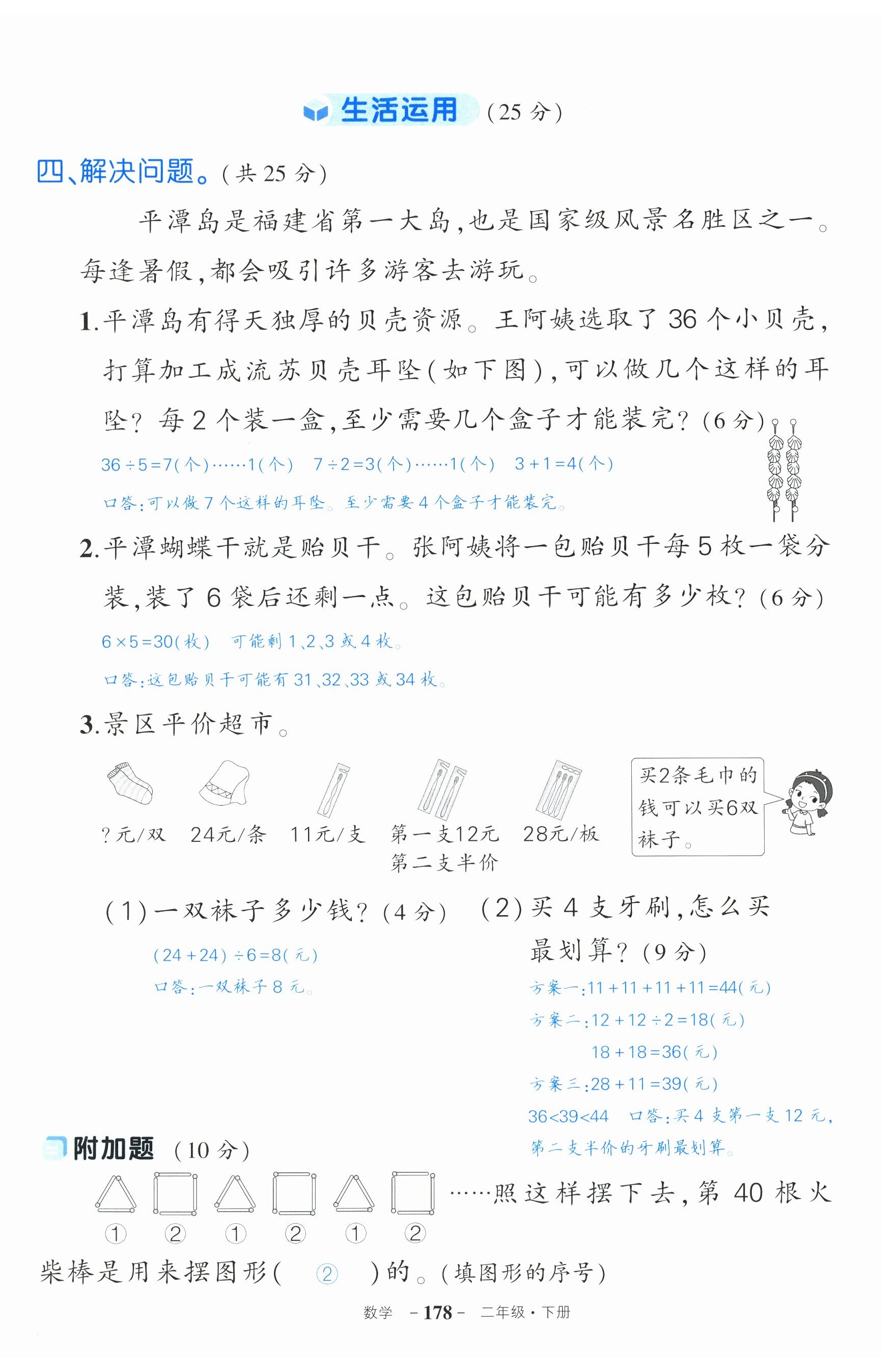 注:目前有些书本章节名称可能整理的还不是很完善,但都是按照顺序排列的,请同学们按照顺序仔细查找。练习册 2025年黄冈状元成才路状元作业本二年级数学下册人教版福建专版 答案主要是用来给同学们做完题方便对答案用的,请勿直接抄袭。