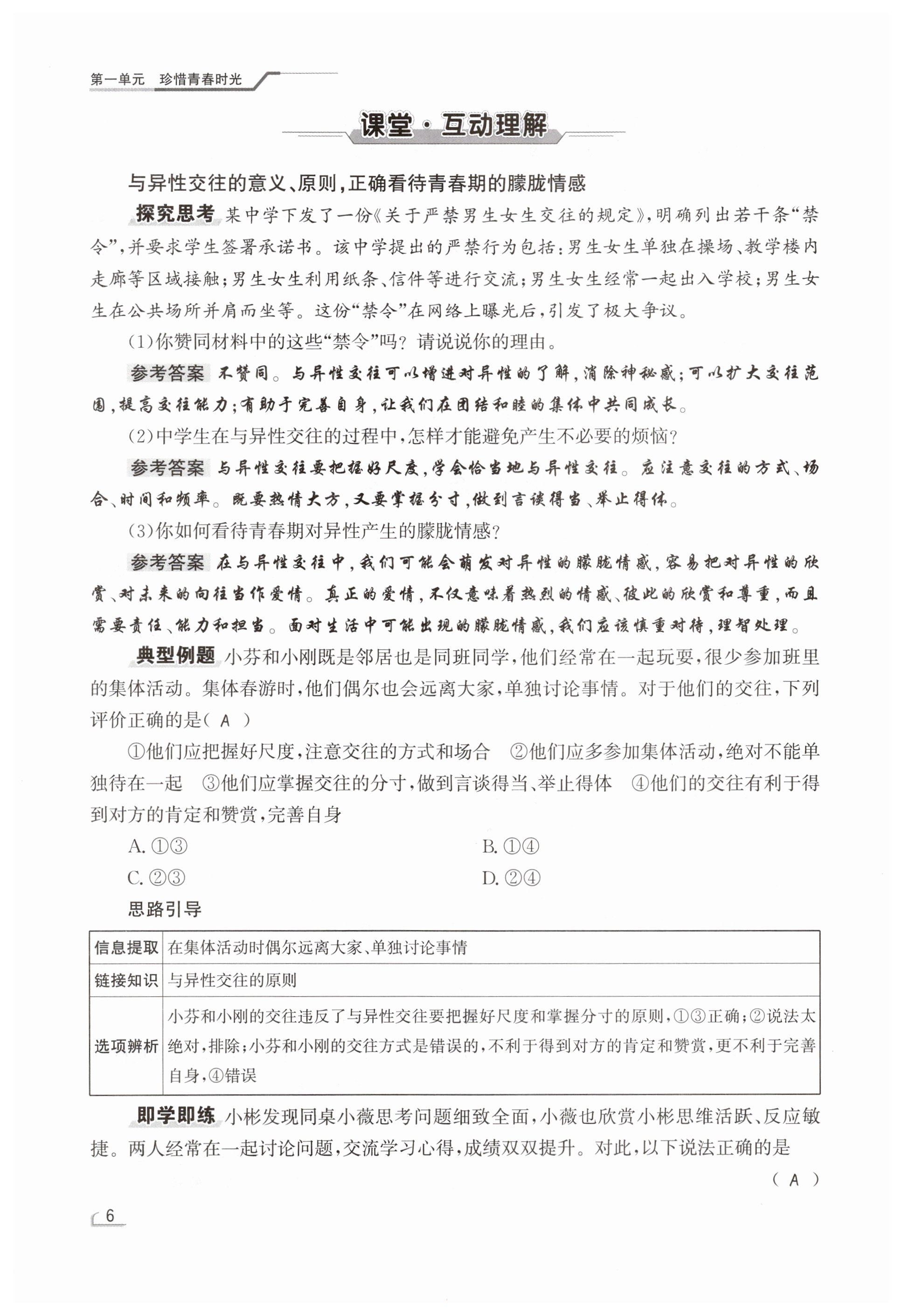 注:目前有些书本章节名称可能整理的还不是很完善,但都是按照顺序排列的,请同学们按照顺序仔细查找。练习册 2025年同步测控优化设计七年级道德与法治下册人教精编版 答案主要是用来给同学们做完题方便对答案用的,请勿直接抄袭。