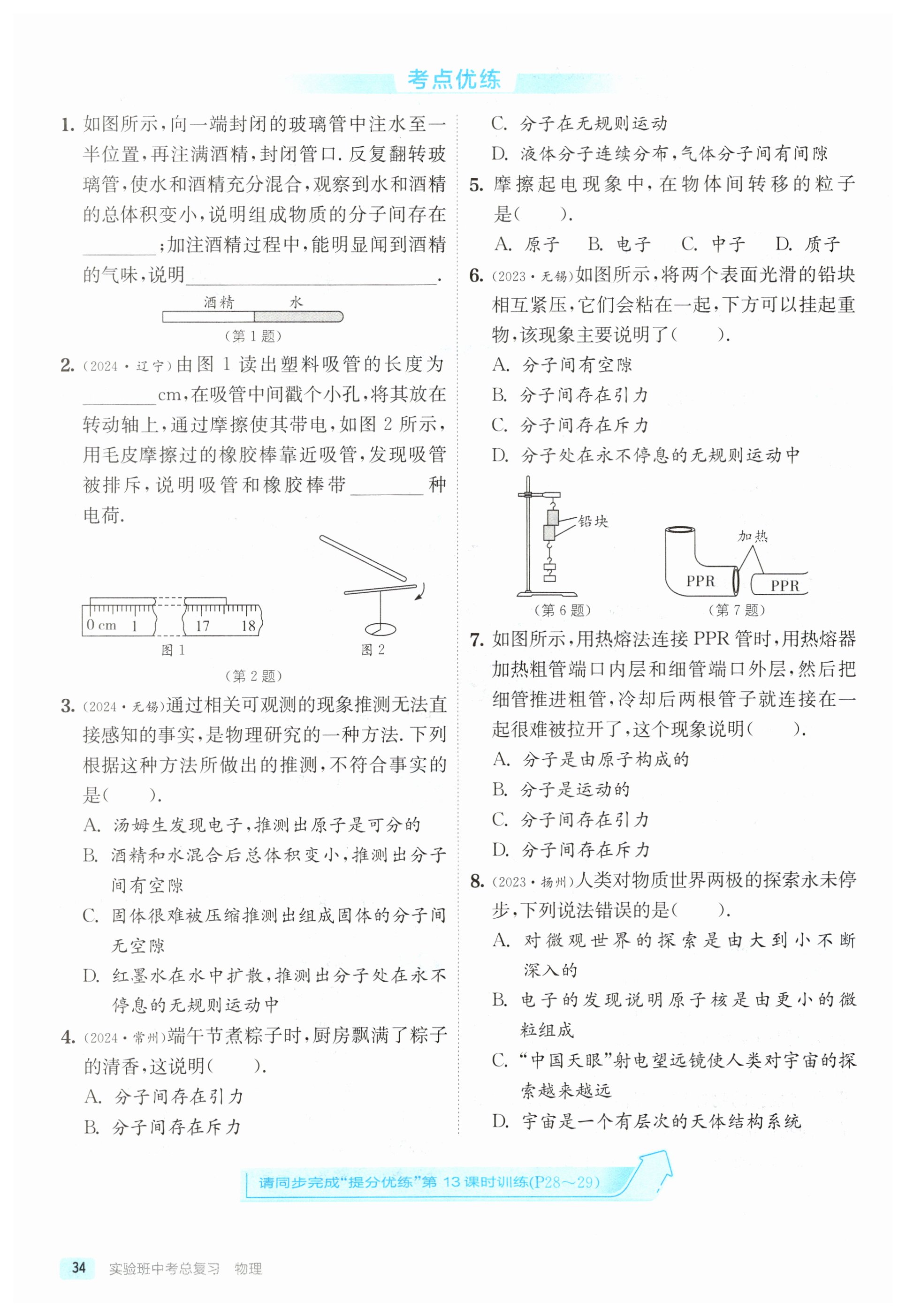 注:目前有些书本章节名称可能整理的还不是很完善,但都是按照顺序排列的,请同学们按照顺序仔细查找。练习册 2025年实验班中考总复习物理徐州专版 答案主要是用来给同学们做完题方便对答案用的,请勿直接抄袭。