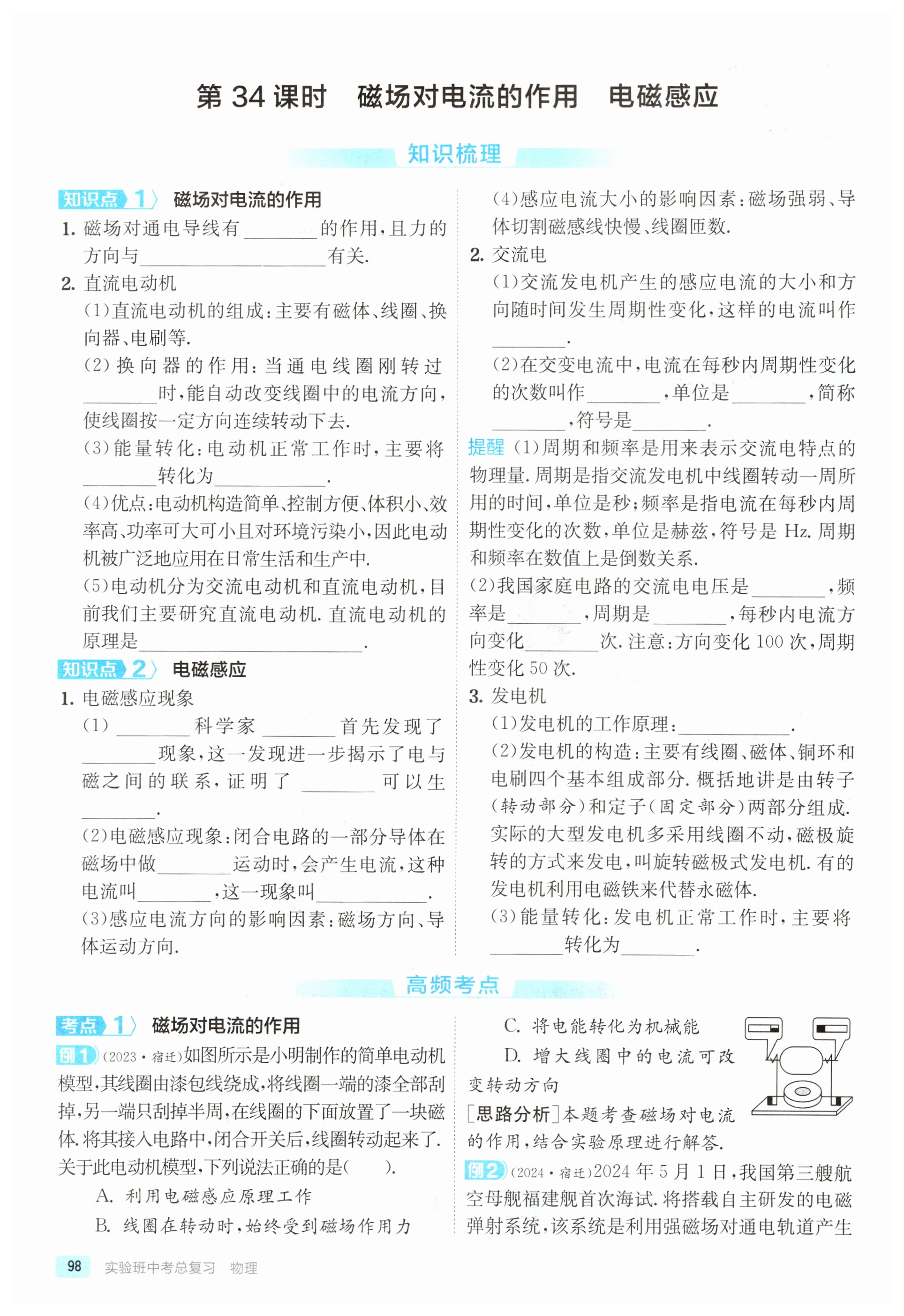 注:目前有些书本章节名称可能整理的还不是很完善,但都是按照顺序排列的,请同学们按照顺序仔细查找。练习册 2025年实验班中考总复习物理徐州专版 答案主要是用来给同学们做完题方便对答案用的,请勿直接抄袭。