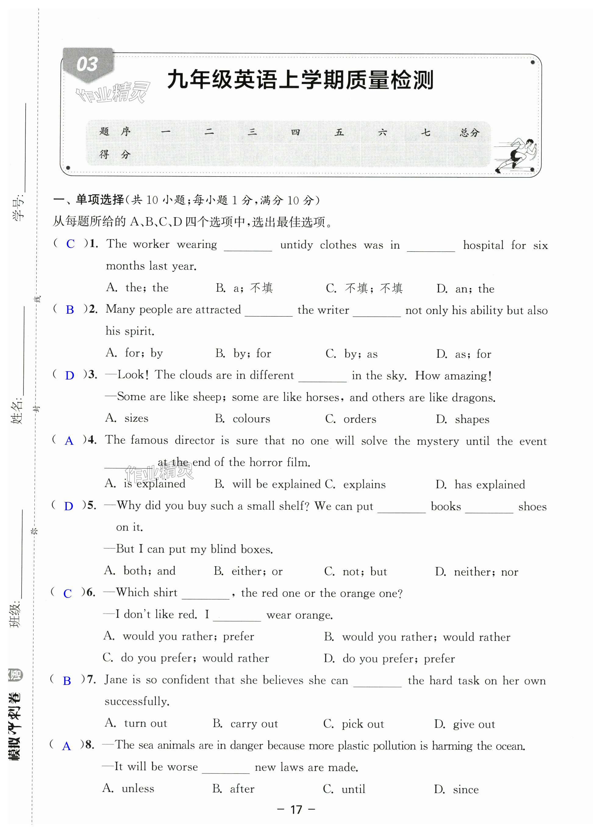 注:目前有些书本章节名称可能整理的还不是很完善,但都是按照顺序排列的,请同学们按照顺序仔细查找。练习册 2025年中考专题复习模拟冲刺卷英语 答案主要是用来给同学们做完题方便对答案用的,请勿直接抄袭。