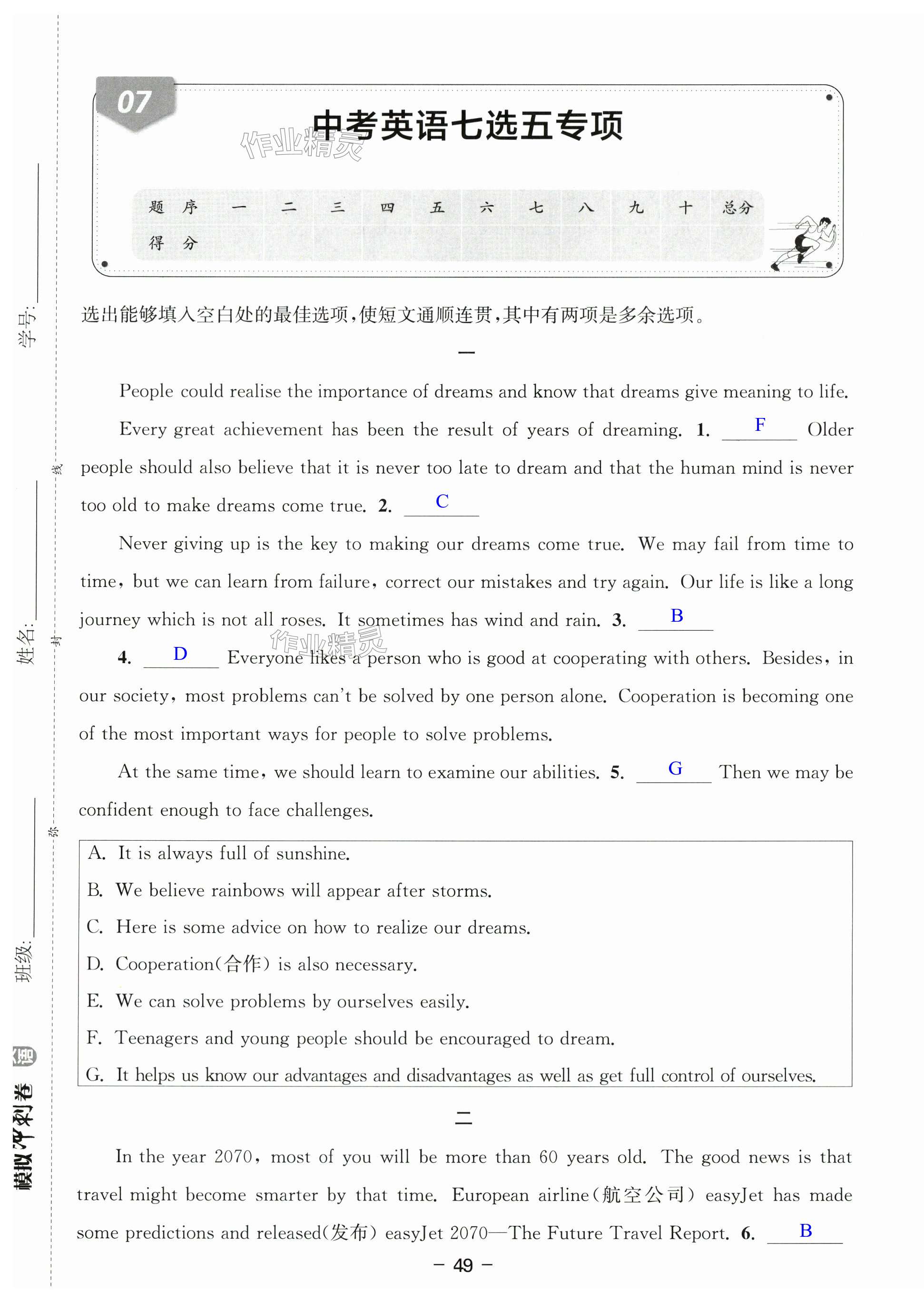 注:目前有些书本章节名称可能整理的还不是很完善,但都是按照顺序排列的,请同学们按照顺序仔细查找。练习册 2025年中考专题复习模拟冲刺卷英语 答案主要是用来给同学们做完题方便对答案用的,请勿直接抄袭。