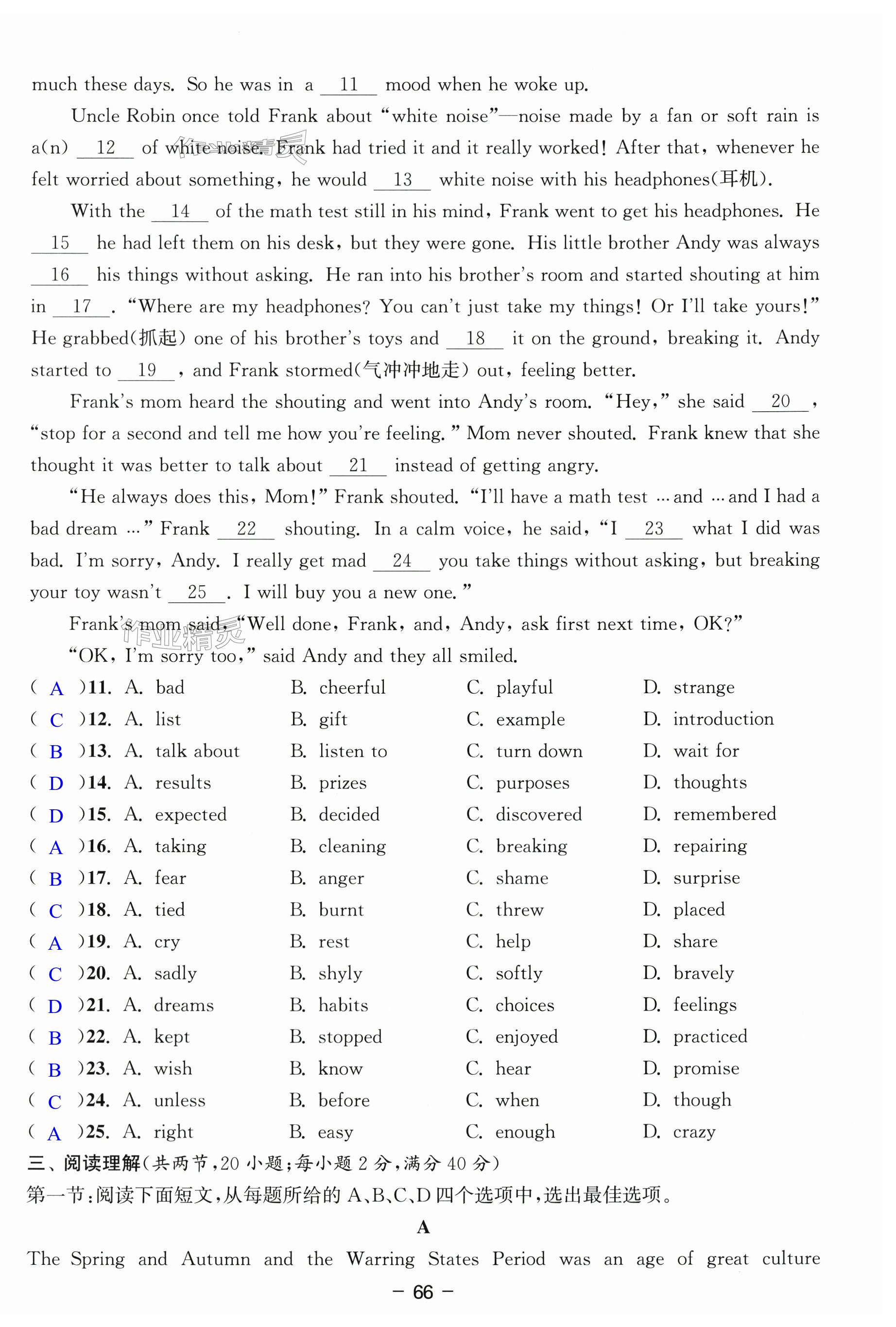 注:目前有些书本章节名称可能整理的还不是很完善,但都是按照顺序排列的,请同学们按照顺序仔细查找。练习册 2025年中考专题复习模拟冲刺卷英语 答案主要是用来给同学们做完题方便对答案用的,请勿直接抄袭。