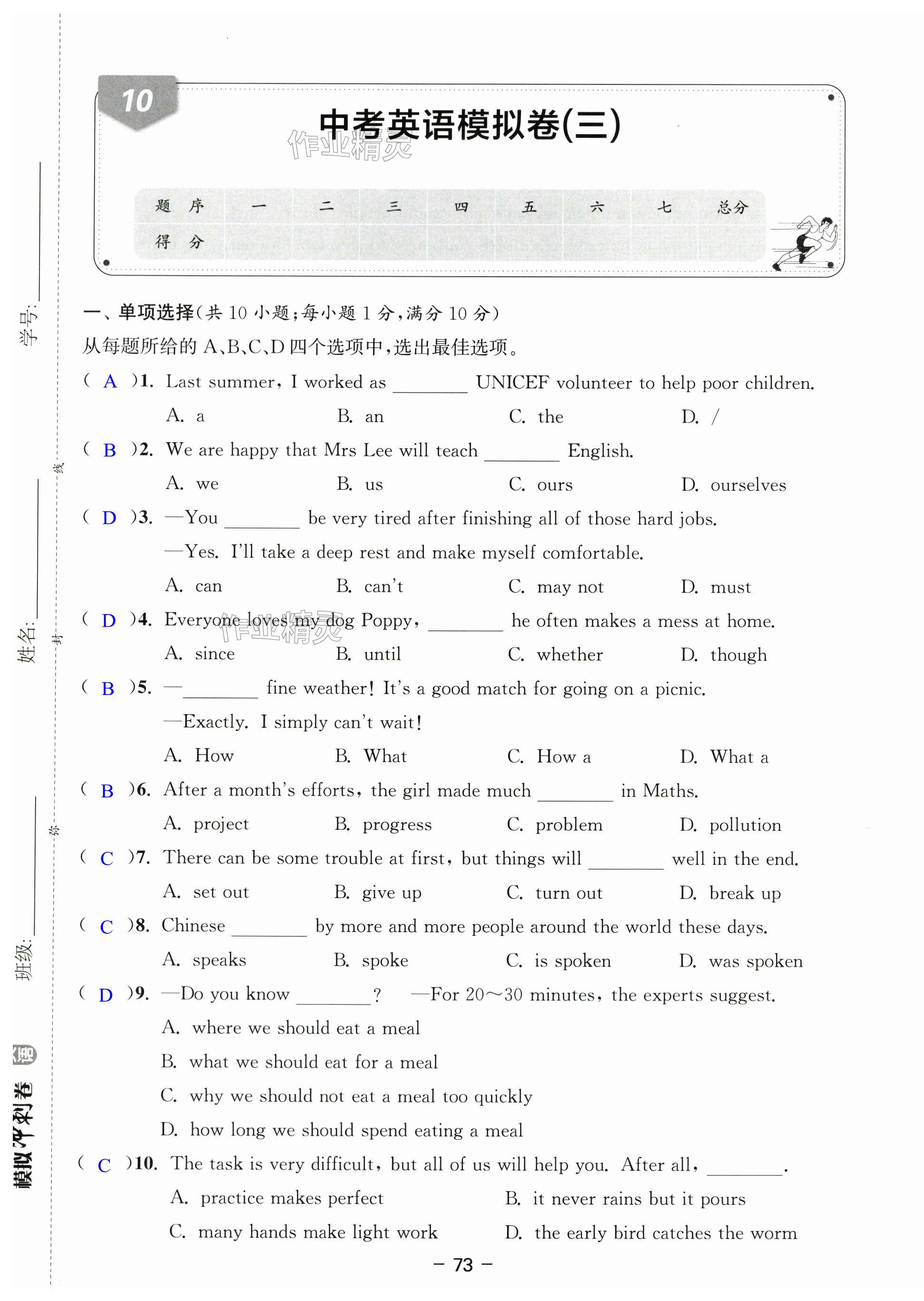 注:目前有些书本章节名称可能整理的还不是很完善,但都是按照顺序排列的,请同学们按照顺序仔细查找。练习册 2025年中考专题复习模拟冲刺卷英语 答案主要是用来给同学们做完题方便对答案用的,请勿直接抄袭。