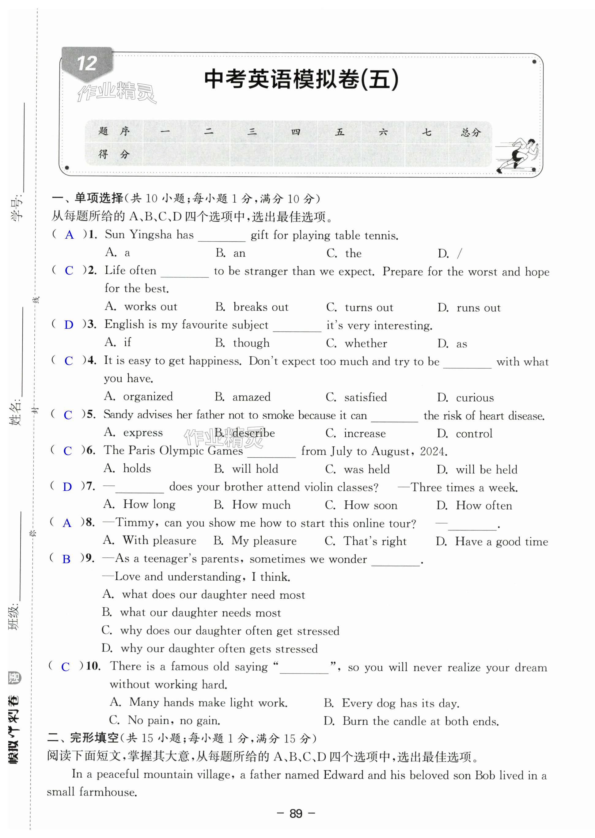 注:目前有些书本章节名称可能整理的还不是很完善,但都是按照顺序排列的,请同学们按照顺序仔细查找。练习册 2025年中考专题复习模拟冲刺卷英语 答案主要是用来给同学们做完题方便对答案用的,请勿直接抄袭。
