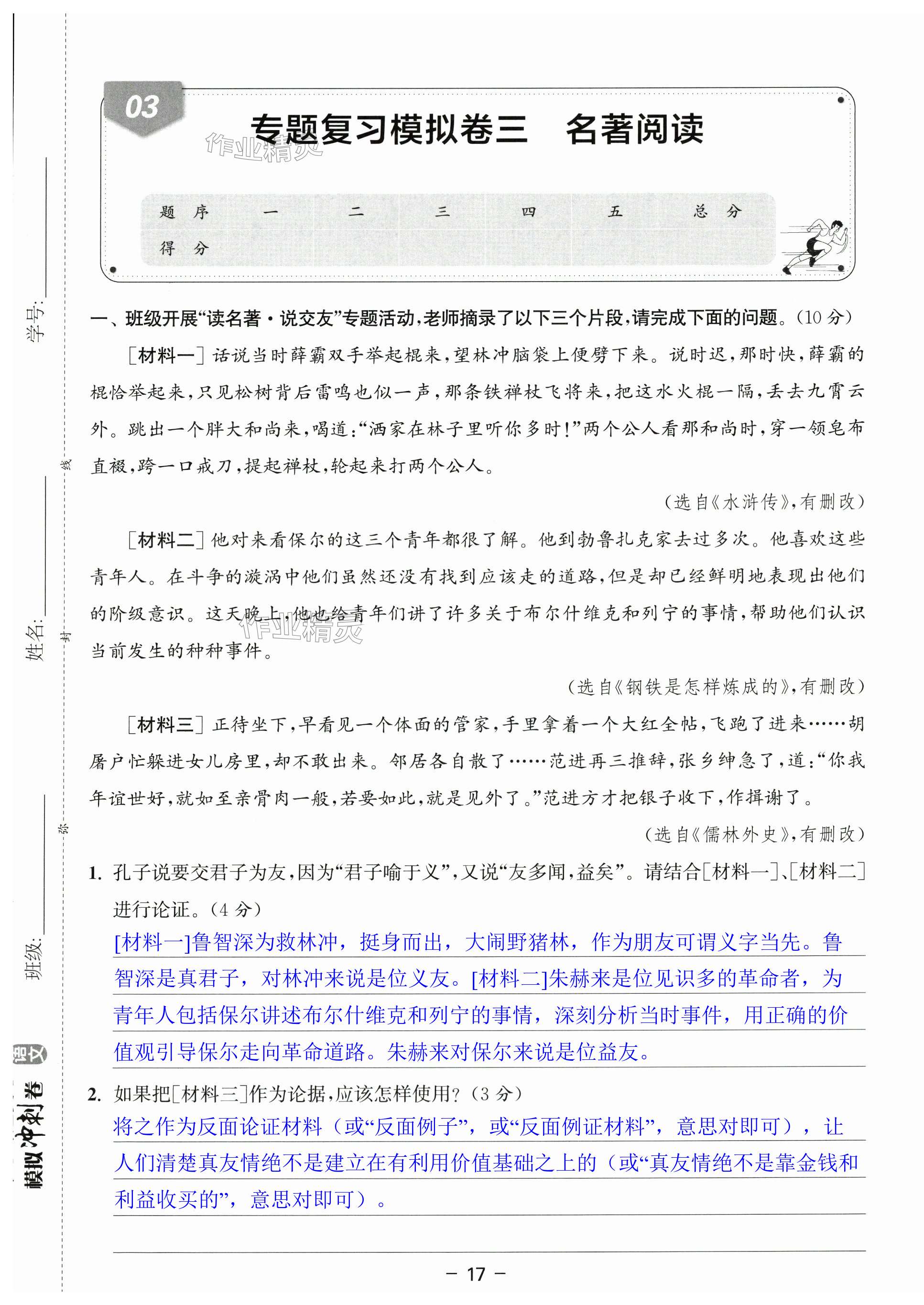 注:目前有些书本章节名称可能整理的还不是很完善,但都是按照顺序排列的,请同学们按照顺序仔细查找。练习册 2025年中考专题复习模拟冲刺卷语文 答案主要是用来给同学们做完题方便对答案用的,请勿直接抄袭。