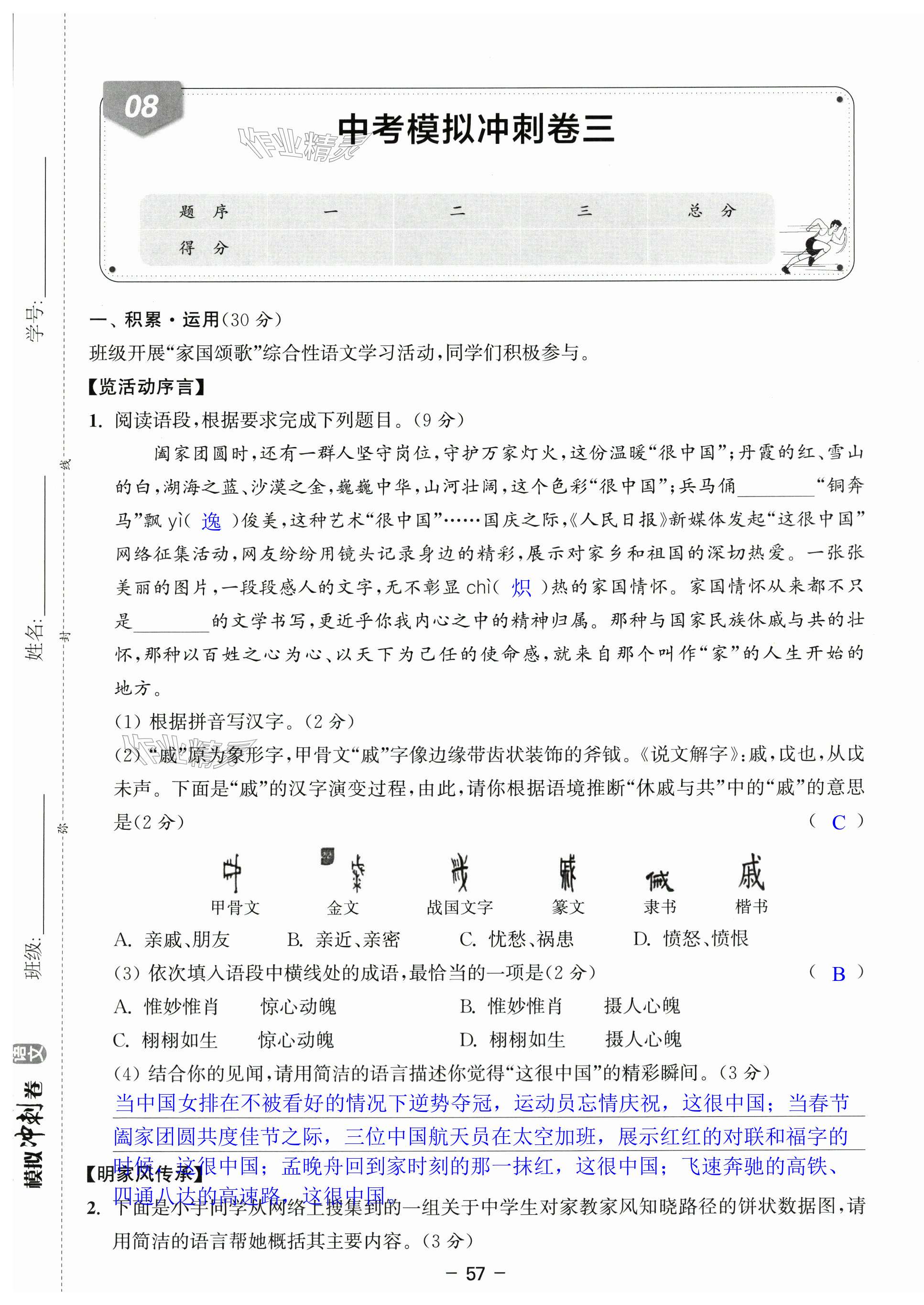 注:目前有些书本章节名称可能整理的还不是很完善,但都是按照顺序排列的,请同学们按照顺序仔细查找。练习册 2025年中考专题复习模拟冲刺卷语文 答案主要是用来给同学们做完题方便对答案用的,请勿直接抄袭。