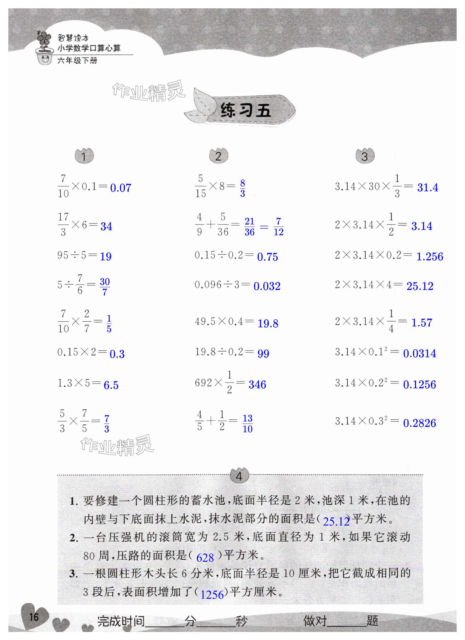 注:目前有些书本章节名称可能整理的还不是很完善,但都是按照顺序排列的,请同学们按照顺序仔细查找。练习册 2025年智慧读本小学数学口算心算六年级下册 答案主要是用来给同学们做完题方便对答案用的,请勿直接抄袭。