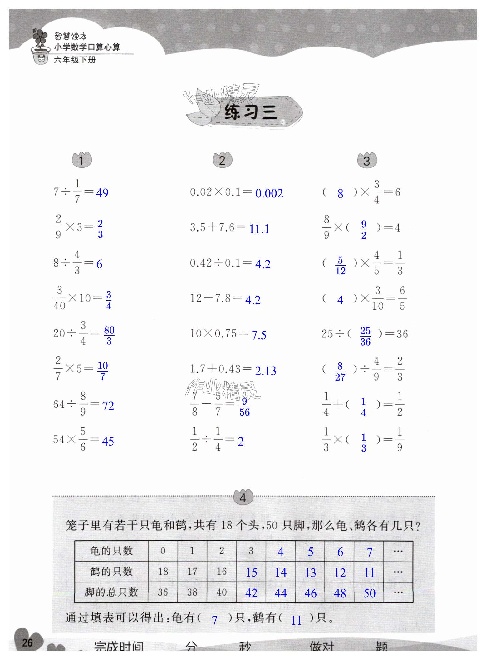注:目前有些书本章节名称可能整理的还不是很完善,但都是按照顺序排列的,请同学们按照顺序仔细查找。练习册 2025年智慧读本小学数学口算心算六年级下册 答案主要是用来给同学们做完题方便对答案用的,请勿直接抄袭。
