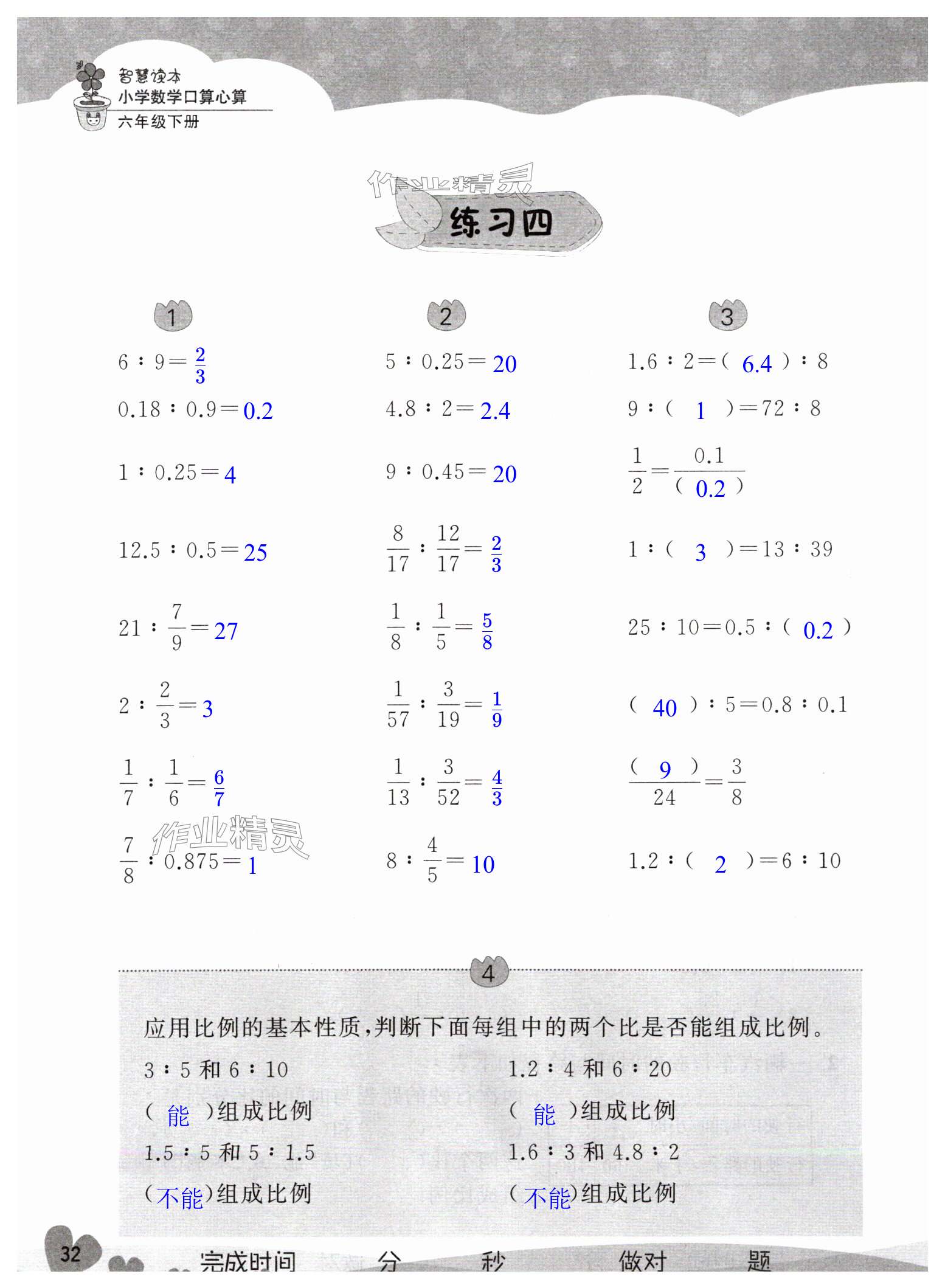 注:目前有些书本章节名称可能整理的还不是很完善,但都是按照顺序排列的,请同学们按照顺序仔细查找。练习册 2025年智慧读本小学数学口算心算六年级下册 答案主要是用来给同学们做完题方便对答案用的,请勿直接抄袭。