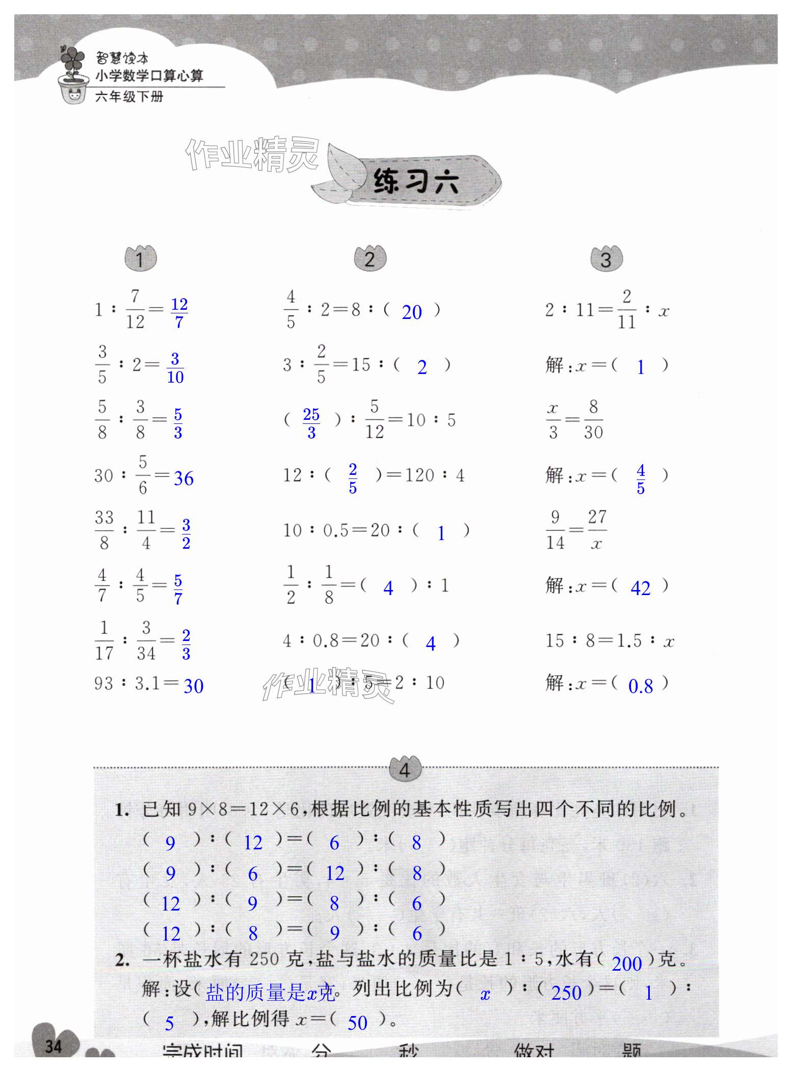 注:目前有些书本章节名称可能整理的还不是很完善,但都是按照顺序排列的,请同学们按照顺序仔细查找。练习册 2025年智慧读本小学数学口算心算六年级下册 答案主要是用来给同学们做完题方便对答案用的,请勿直接抄袭。