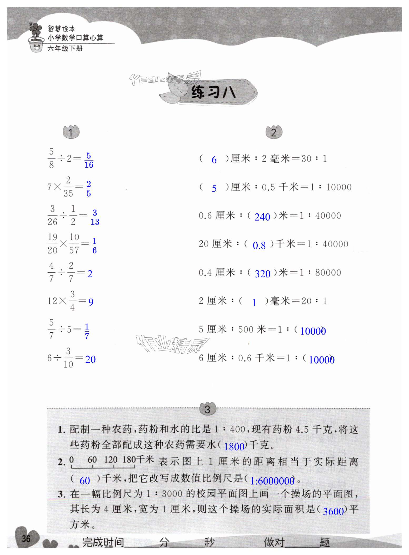 注:目前有些书本章节名称可能整理的还不是很完善,但都是按照顺序排列的,请同学们按照顺序仔细查找。练习册 2025年智慧读本小学数学口算心算六年级下册 答案主要是用来给同学们做完题方便对答案用的,请勿直接抄袭。