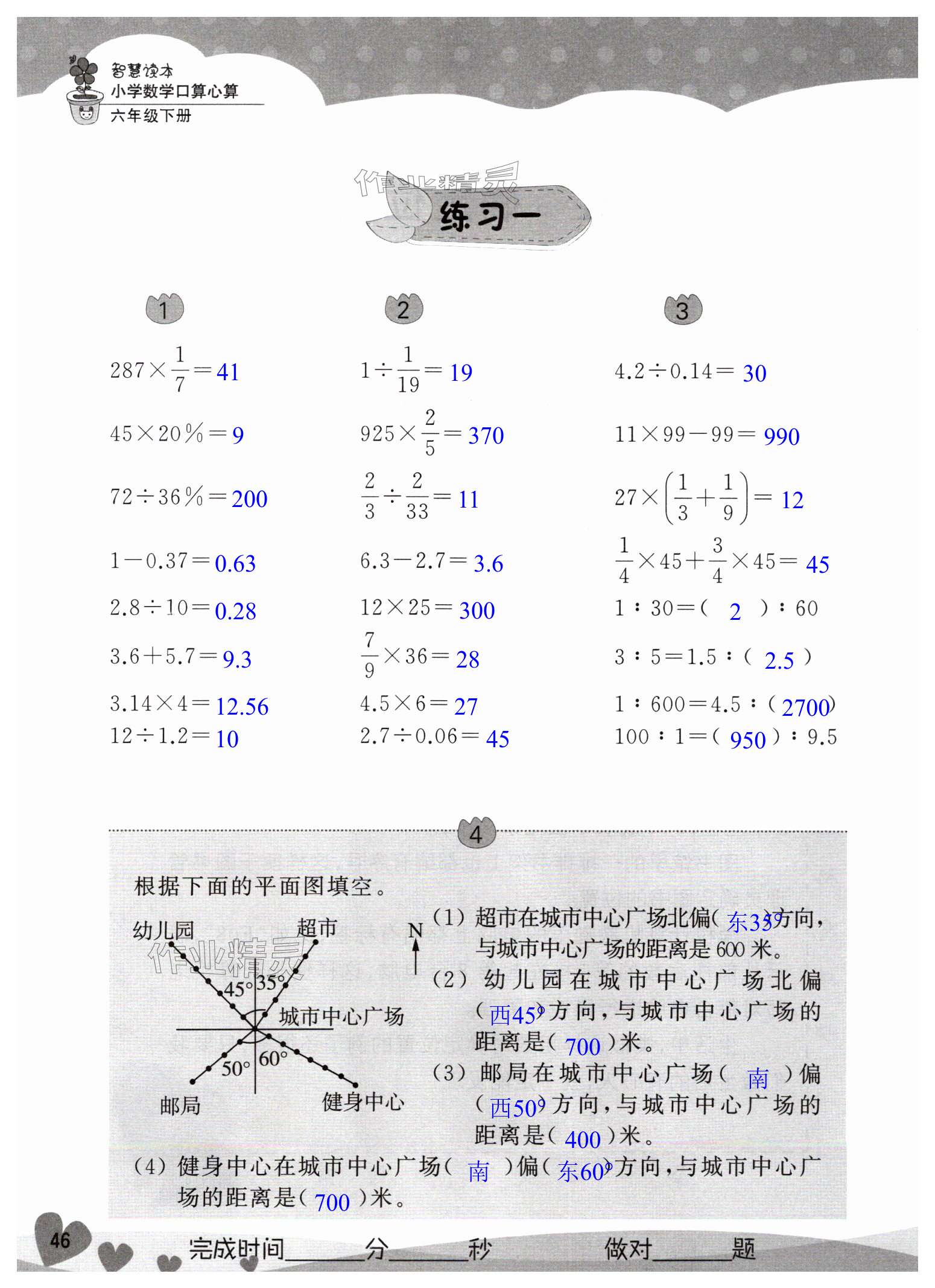 注:目前有些书本章节名称可能整理的还不是很完善,但都是按照顺序排列的,请同学们按照顺序仔细查找。练习册 2025年智慧读本小学数学口算心算六年级下册 答案主要是用来给同学们做完题方便对答案用的,请勿直接抄袭。