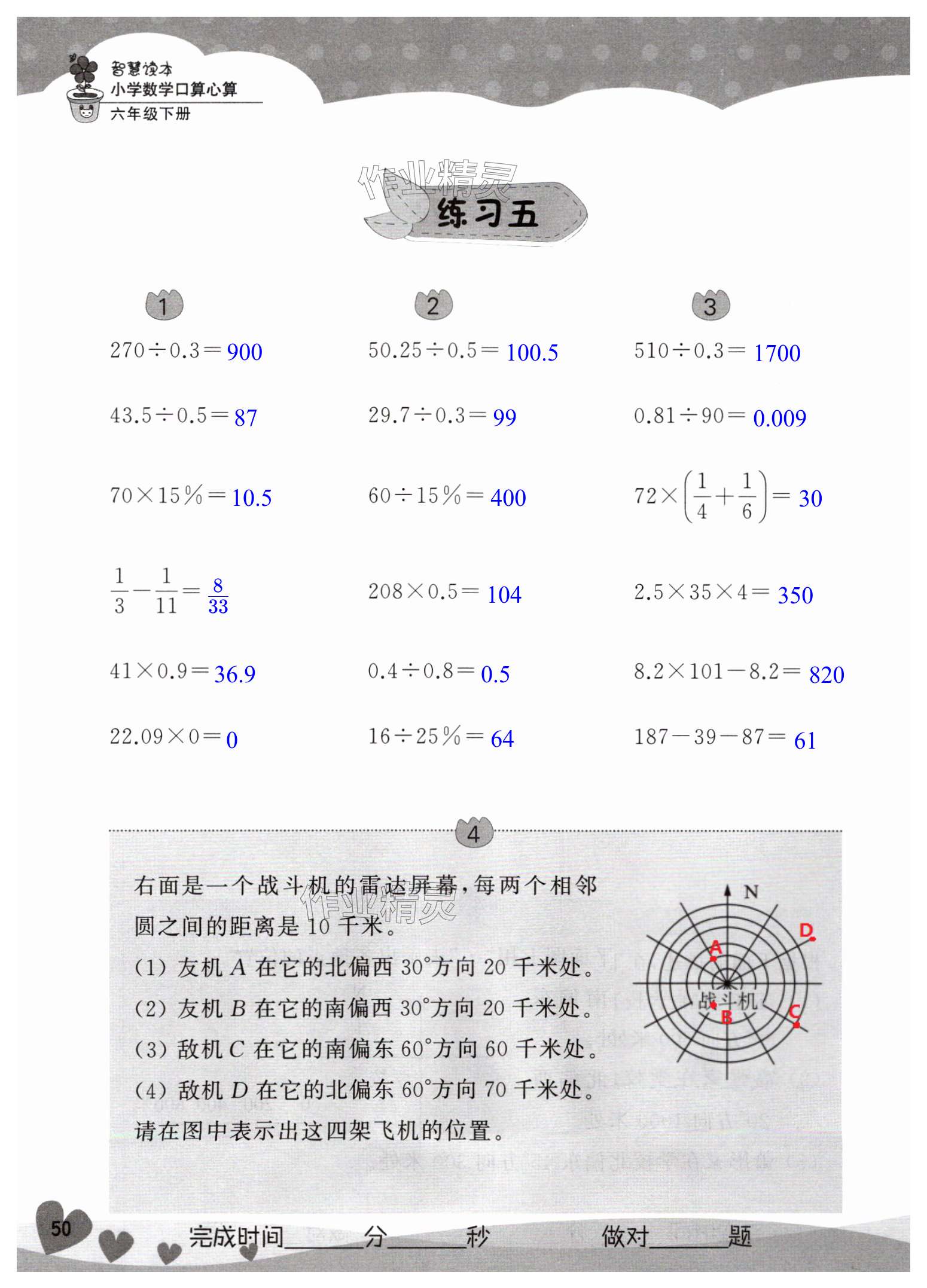 注:目前有些书本章节名称可能整理的还不是很完善,但都是按照顺序排列的,请同学们按照顺序仔细查找。练习册 2025年智慧读本小学数学口算心算六年级下册 答案主要是用来给同学们做完题方便对答案用的,请勿直接抄袭。
