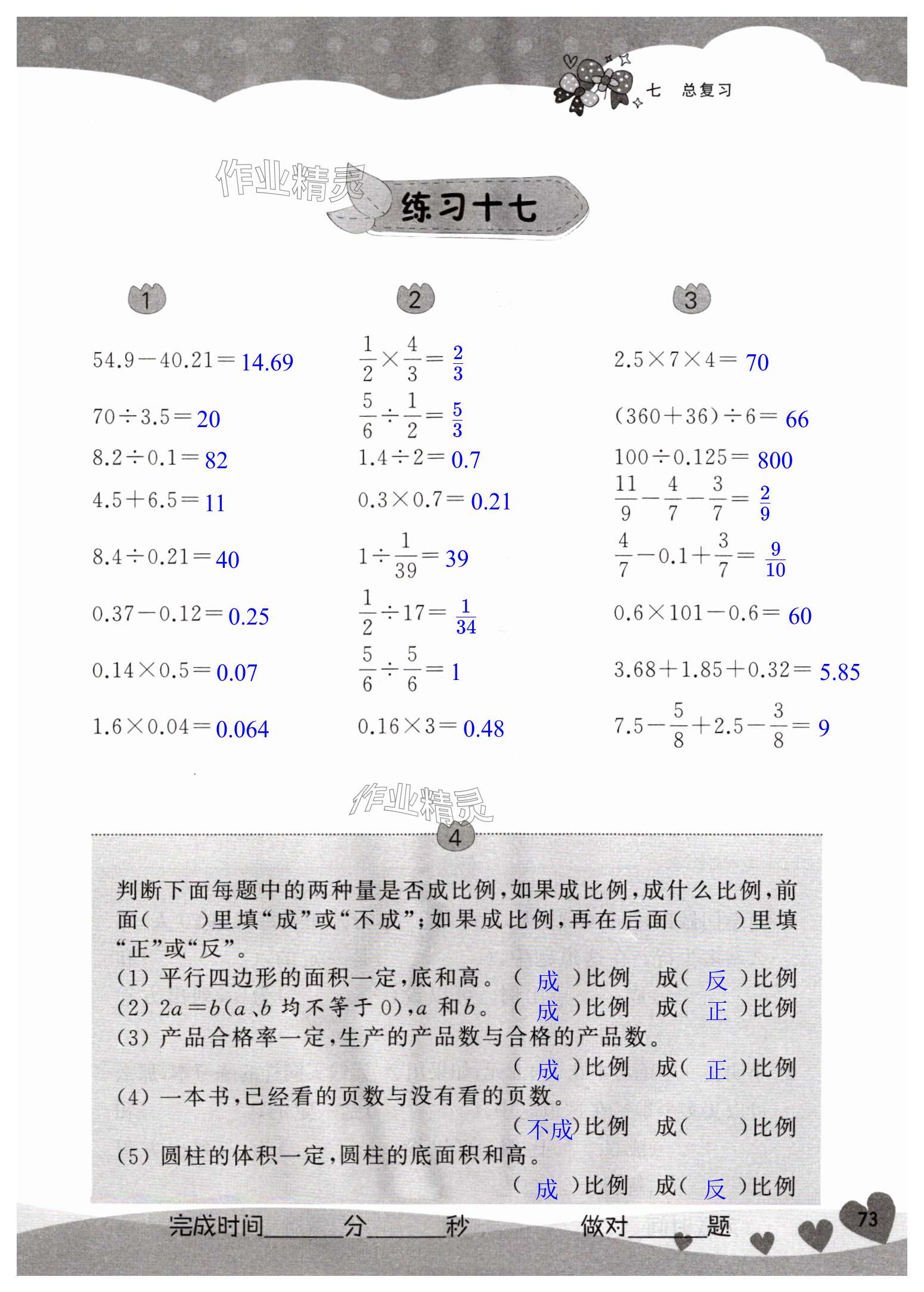注:目前有些书本章节名称可能整理的还不是很完善,但都是按照顺序排列的,请同学们按照顺序仔细查找。练习册 2025年智慧读本小学数学口算心算六年级下册 答案主要是用来给同学们做完题方便对答案用的,请勿直接抄袭。