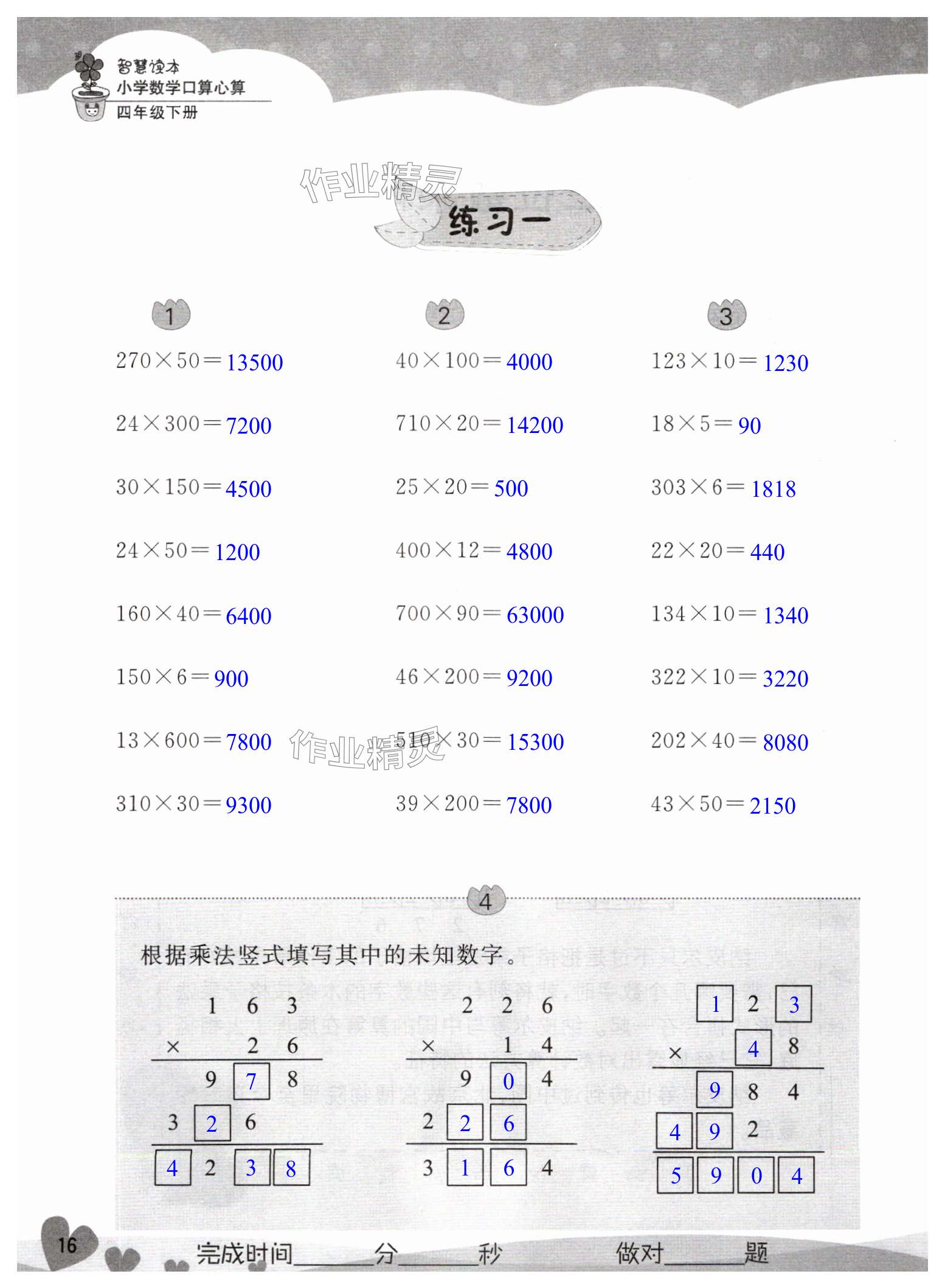 注:目前有些书本章节名称可能整理的还不是很完善,但都是按照顺序排列的,请同学们按照顺序仔细查找。练习册 2025年智慧读本小学数学口算心算四年级下册苏教版 答案主要是用来给同学们做完题方便对答案用的,请勿直接抄袭。