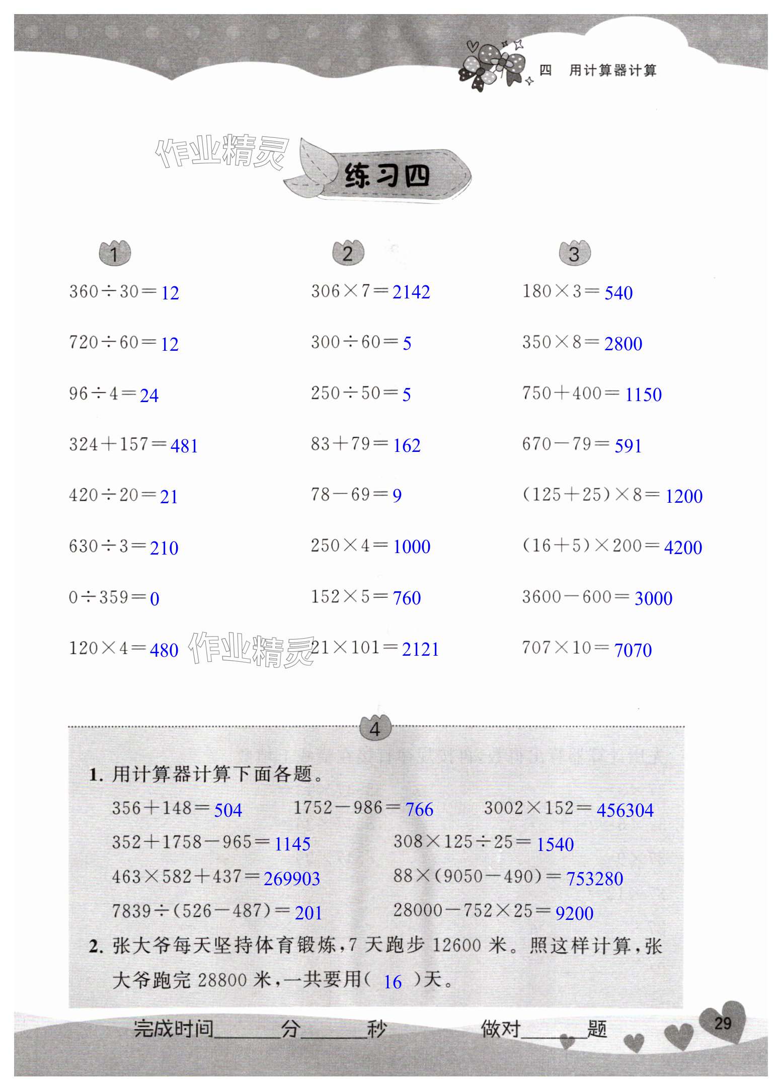 注:目前有些书本章节名称可能整理的还不是很完善,但都是按照顺序排列的,请同学们按照顺序仔细查找。练习册 2025年智慧读本小学数学口算心算四年级下册苏教版 答案主要是用来给同学们做完题方便对答案用的,请勿直接抄袭。