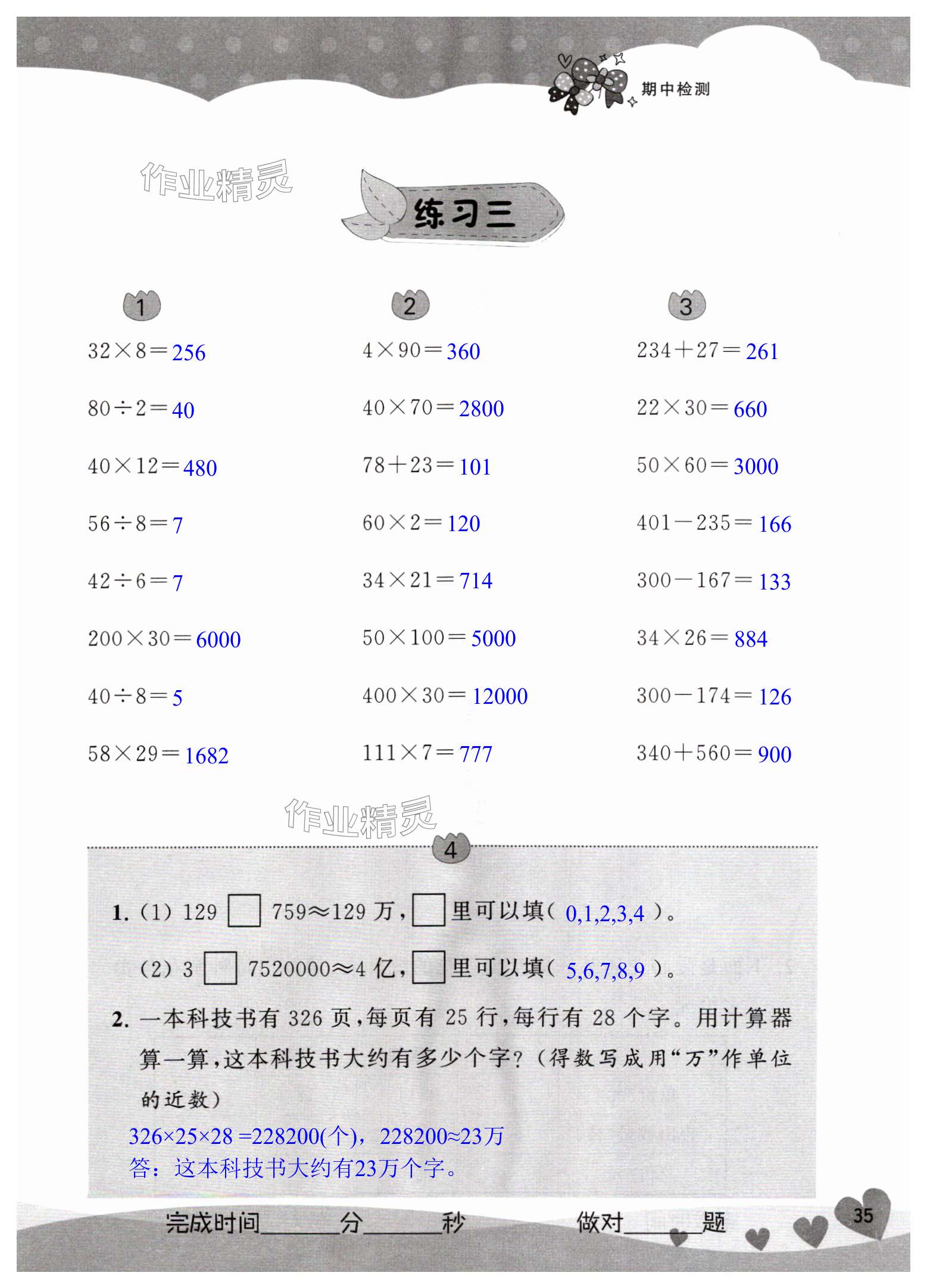 注:目前有些书本章节名称可能整理的还不是很完善,但都是按照顺序排列的,请同学们按照顺序仔细查找。练习册 2025年智慧读本小学数学口算心算四年级下册苏教版 答案主要是用来给同学们做完题方便对答案用的,请勿直接抄袭。