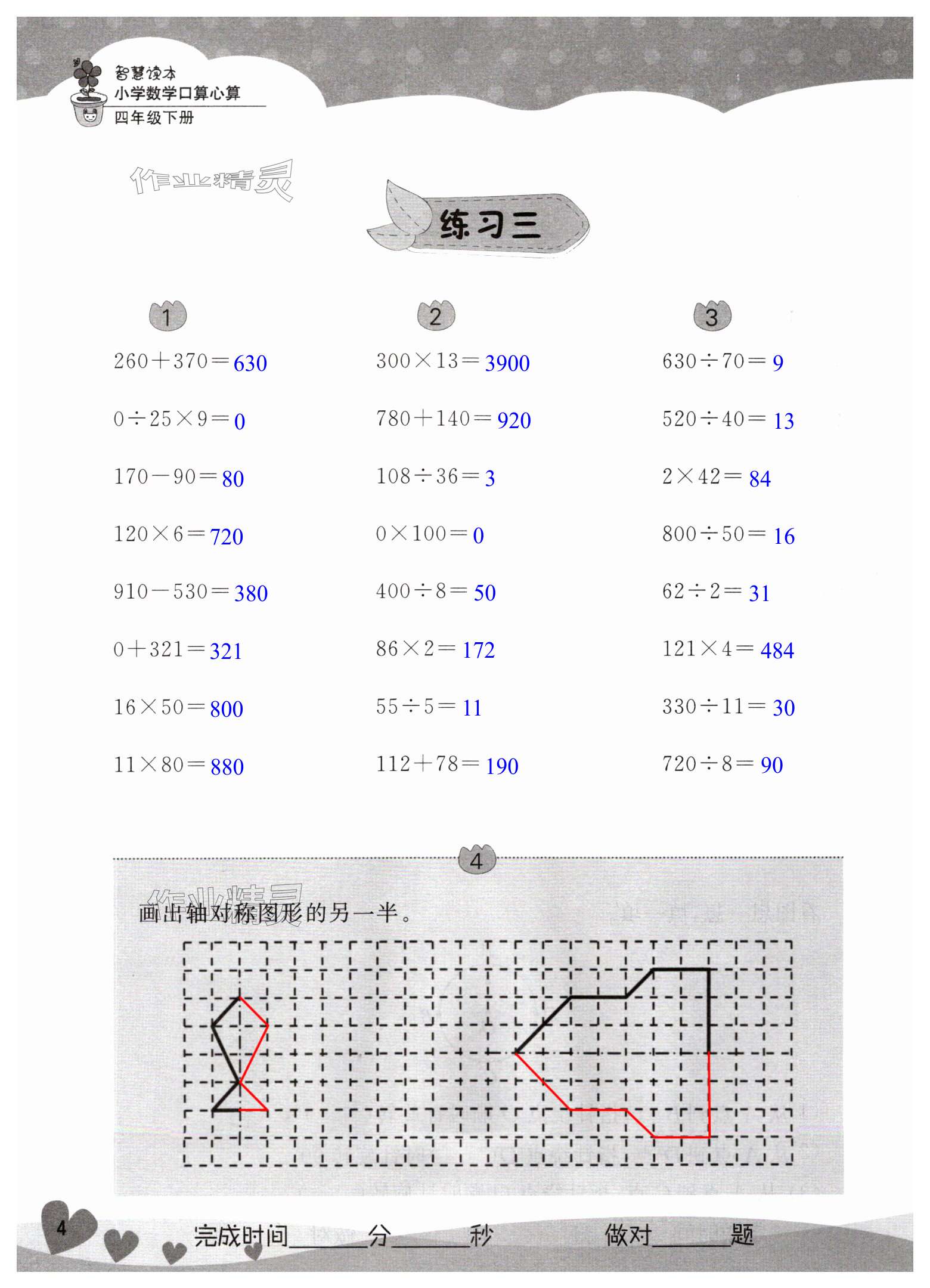 注:目前有些书本章节名称可能整理的还不是很完善,但都是按照顺序排列的,请同学们按照顺序仔细查找。练习册 2025年智慧读本小学数学口算心算四年级下册苏教版 答案主要是用来给同学们做完题方便对答案用的,请勿直接抄袭。