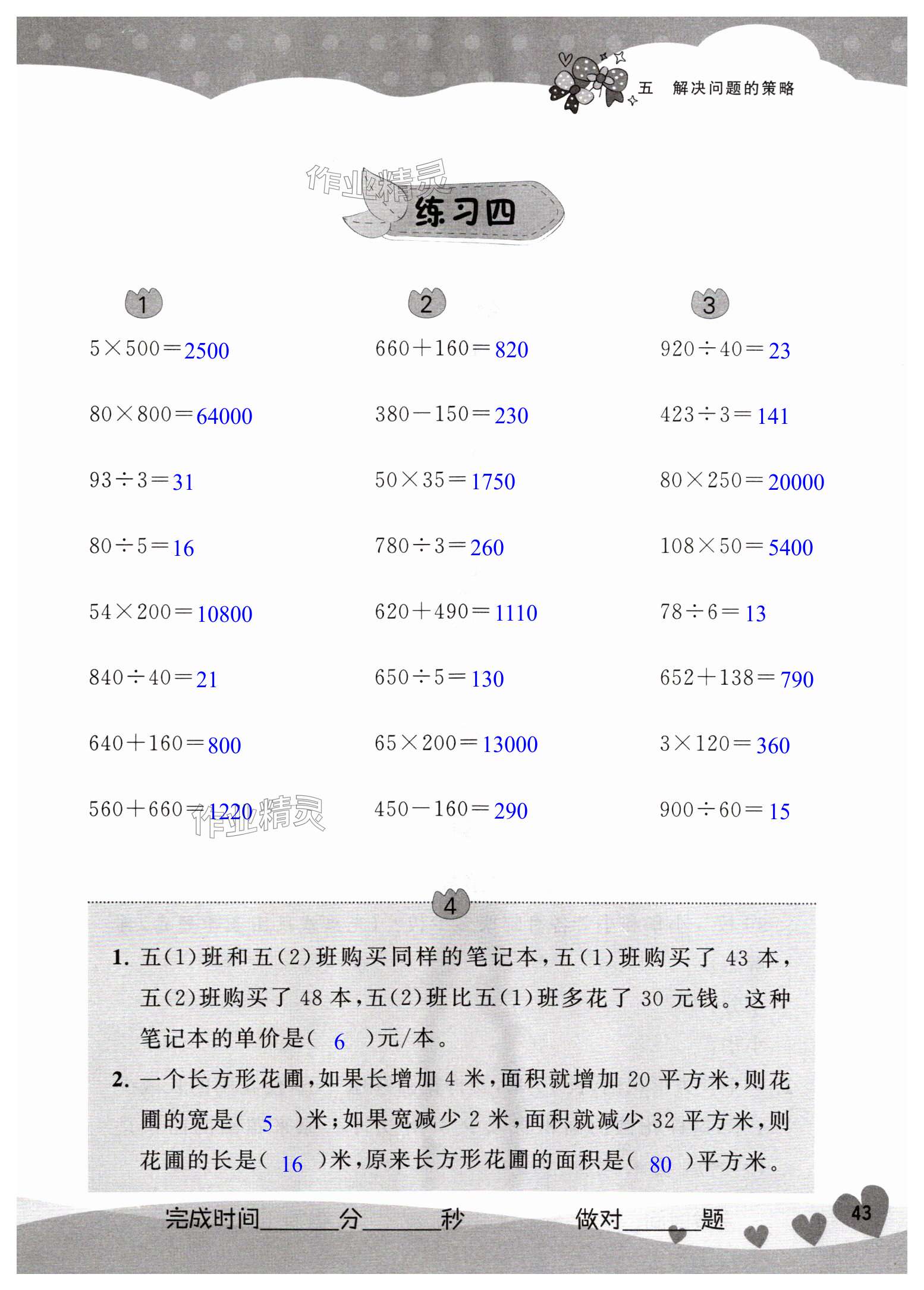 注:目前有些书本章节名称可能整理的还不是很完善,但都是按照顺序排列的,请同学们按照顺序仔细查找。练习册 2025年智慧读本小学数学口算心算四年级下册苏教版 答案主要是用来给同学们做完题方便对答案用的,请勿直接抄袭。