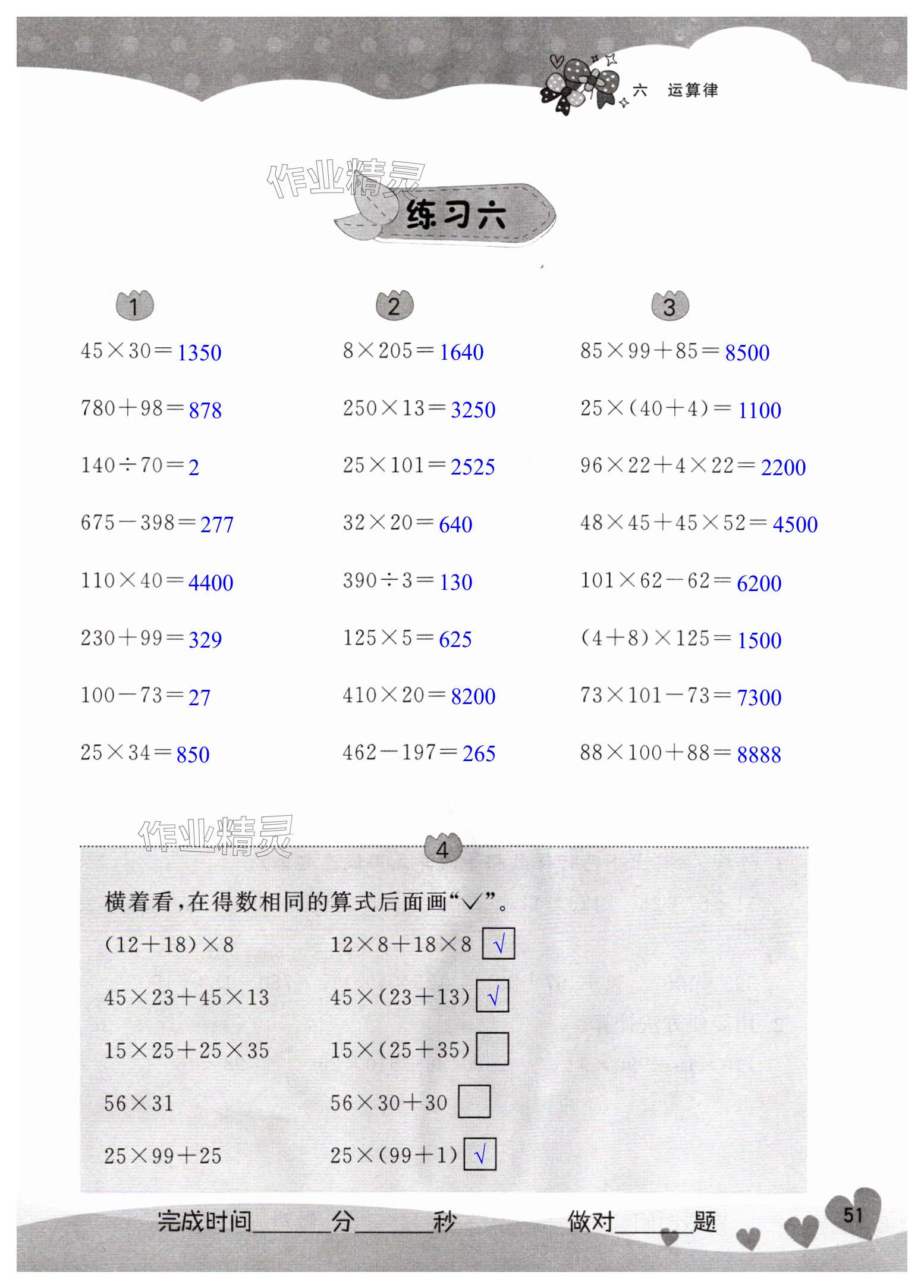 注:目前有些书本章节名称可能整理的还不是很完善,但都是按照顺序排列的,请同学们按照顺序仔细查找。练习册 2025年智慧读本小学数学口算心算四年级下册苏教版 答案主要是用来给同学们做完题方便对答案用的,请勿直接抄袭。