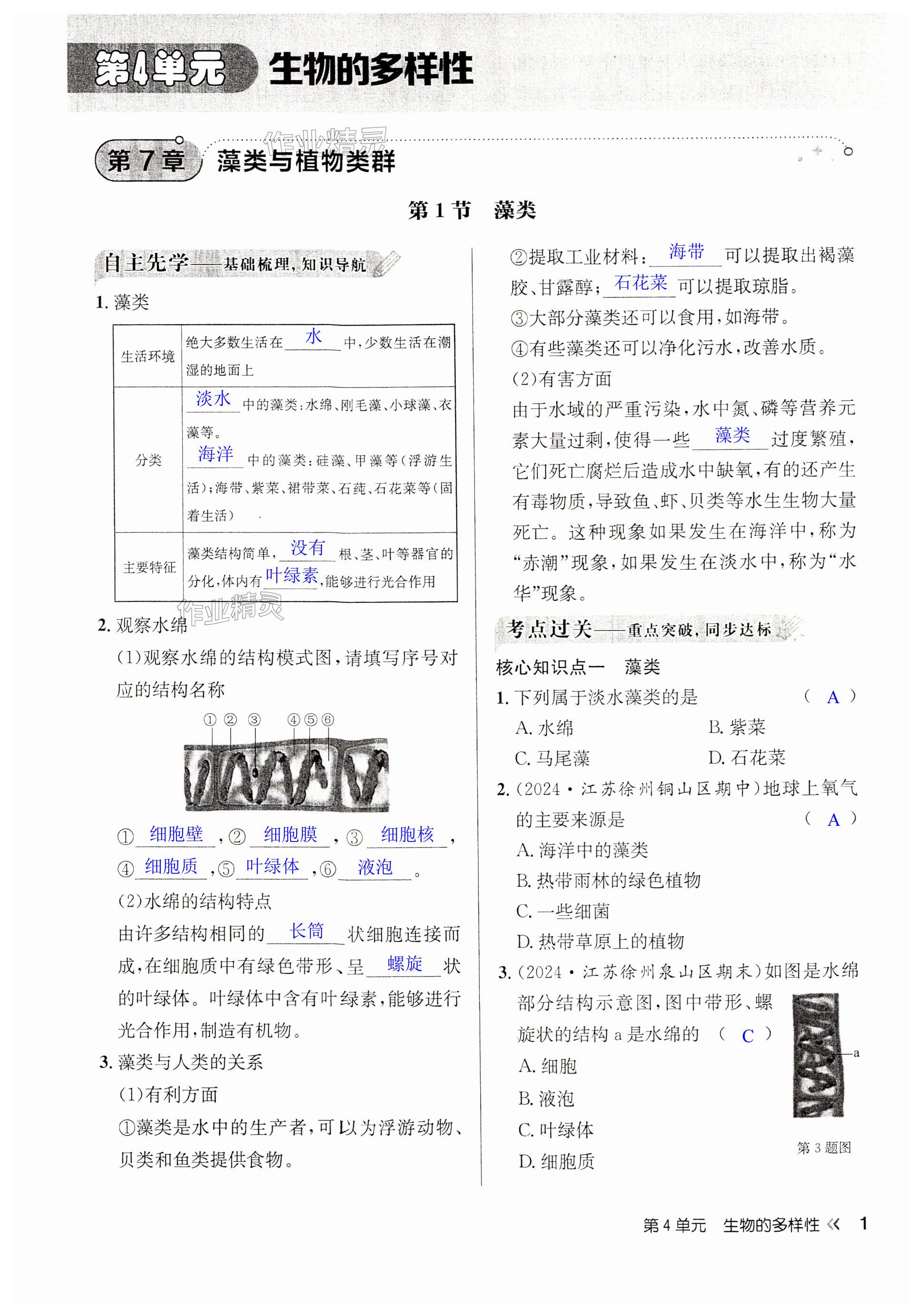 注:目前有些书本章节名称可能整理的还不是很完善,但都是按照顺序排列的,请同学们按照顺序仔细查找。练习册 2025年启东中学作业本七年级生物下册苏科版 答案主要是用来给同学们做完题方便对答案用的,请勿直接抄袭。
