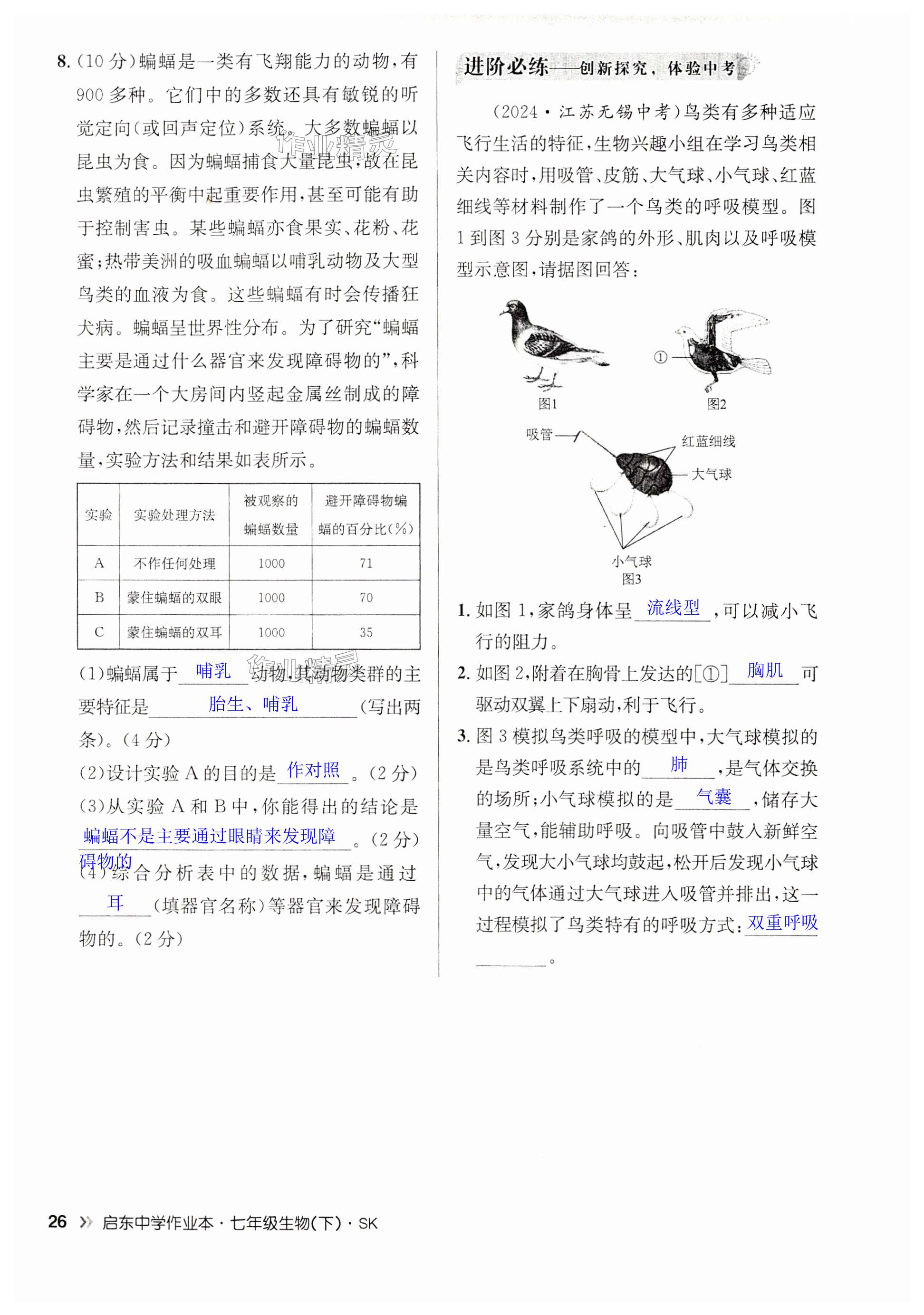 注:目前有些书本章节名称可能整理的还不是很完善,但都是按照顺序排列的,请同学们按照顺序仔细查找。练习册 2025年启东中学作业本七年级生物下册苏科版 答案主要是用来给同学们做完题方便对答案用的,请勿直接抄袭。