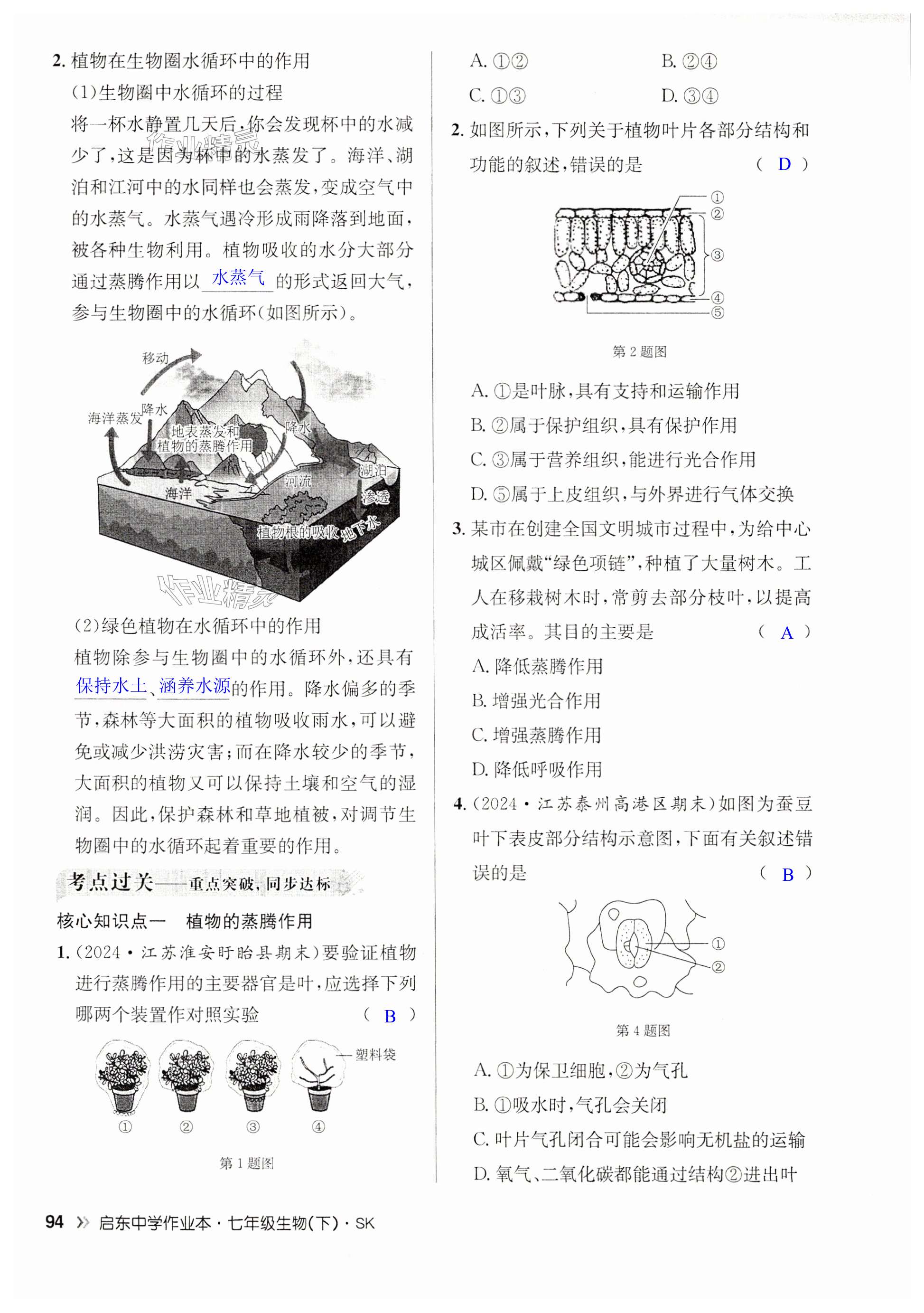 注:目前有些书本章节名称可能整理的还不是很完善,但都是按照顺序排列的,请同学们按照顺序仔细查找。练习册 2025年启东中学作业本七年级生物下册苏科版 答案主要是用来给同学们做完题方便对答案用的,请勿直接抄袭。