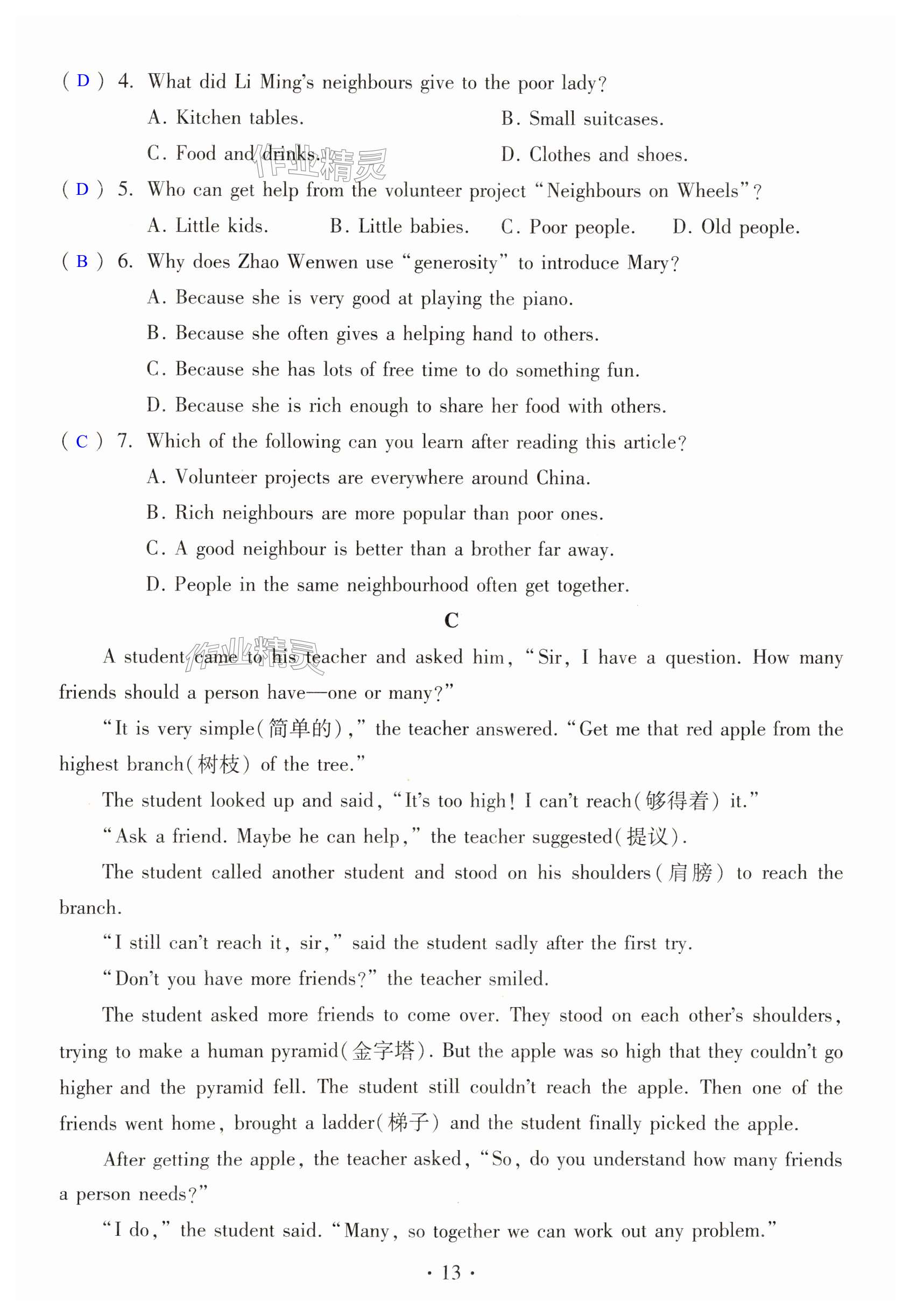 注:目前有些书本章节名称可能整理的还不是很完善,但都是按照顺序排列的,请同学们按照顺序仔细查找。练习册 2025年单元评价江苏凤凰美术出版社七年级英语下册译林版 答案主要是用来给同学们做完题方便对答案用的,请勿直接抄袭。