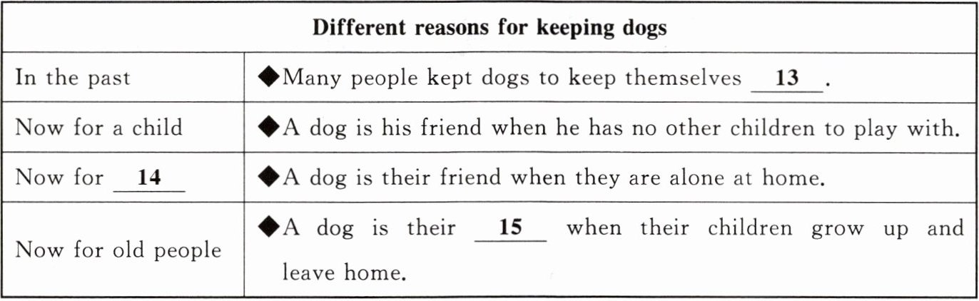 | In the past | ◆Many people kept dogs to keep themselves 13 . |