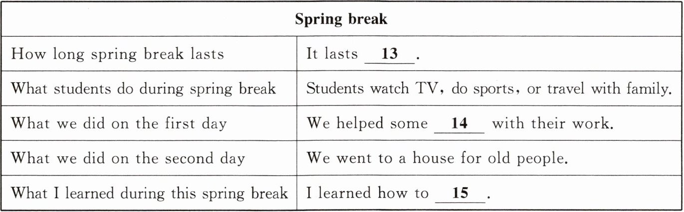 听第一篇短文,回答第13~15小题。请根据短文内容,选择正确答案,完成信息记录表。