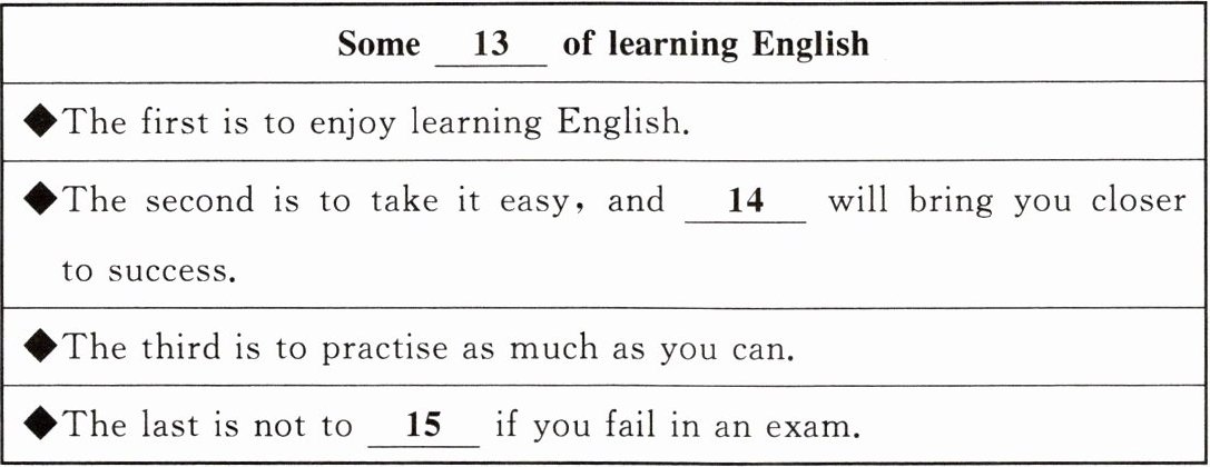 听第一篇短文,回答第13~15小题。请根据短文内容,选择正确答案,完成信息记录表。