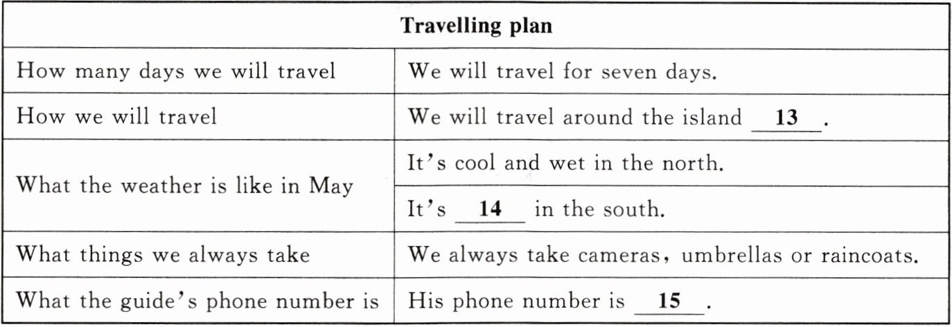 听第一篇短文,回答第13~15小题。请根据短文内容,选择正确答案,完成信息记录表。