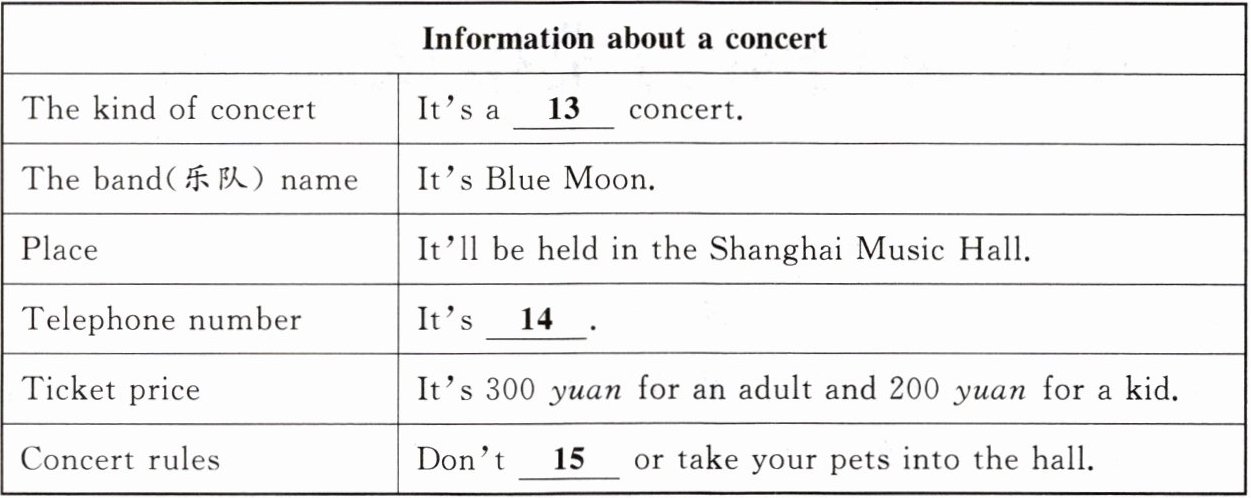 |Concert rules|Don't 15 or take your pets into the hall.|