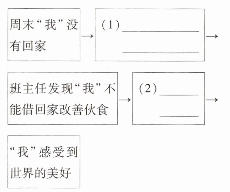 14.阅读第①~⑩段,从“原因(条件)→结果(逻辑)”这个角度梳理故事情节,完成示意图。(4分)