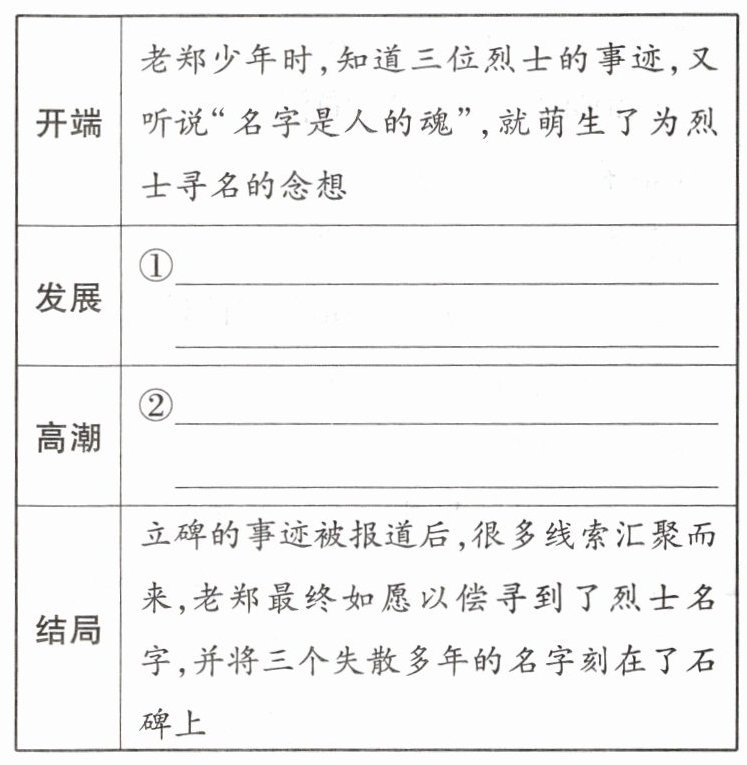 1. 本文情节曲折,引人入胜,请认真梳理,将下面空缺的情节补充完整。