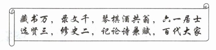 (2)示例:这副对联描述的是欧阳修的生活雅趣和文学成就,赞扬了欧阳修的非凡功业、人格魅力,表达了对欧阳修的敬仰之情。