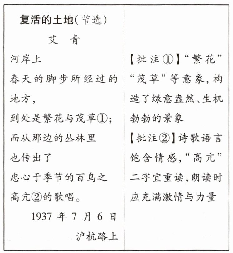 A. 材料一的两处批注,有助于我们理解现代诗歌《复活的土地》的情感。