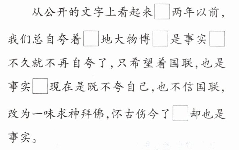 3. “假使这也算一种‘信’,那也只能说中国人曾经有过‘他信力’,自从对国联失望之后,便把这他信力都失掉了。”这句话中“他信力”加上引号,所起的作用是( )