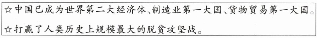 ①中国已经成为世界第二大经济体 ②人民收入较快增长,家庭财产稳步增加 ③城乡发展不平衡不协调 ④中国日益成为推动世界经济增长的主要稳定器和动力源